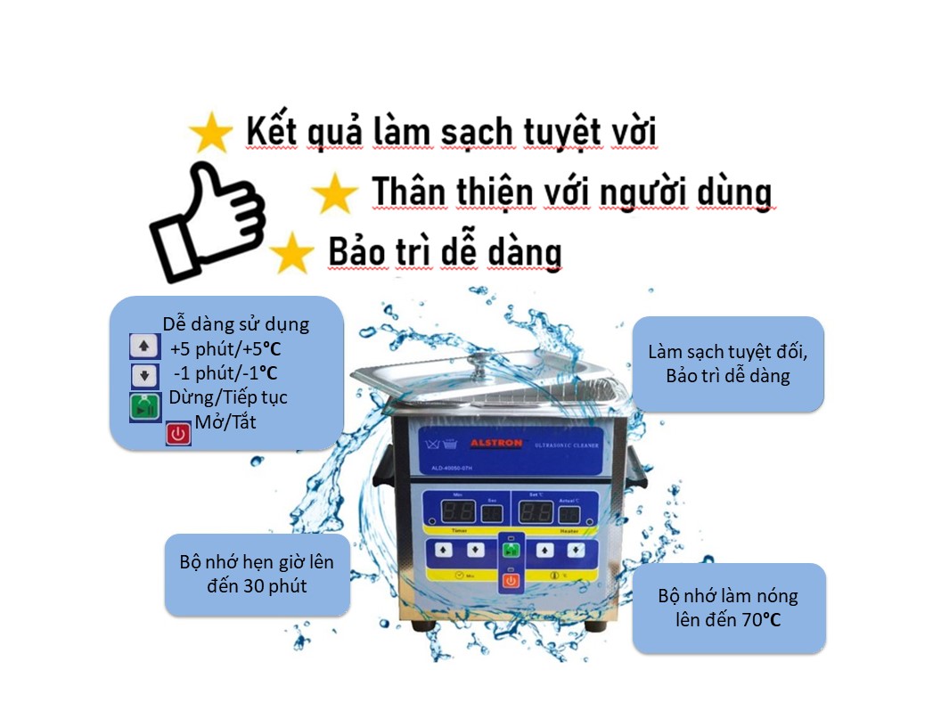 Đặc trưng của GT SONIC-T2 Bể rửa siêu âm 2 lít có gia nhiệt: - Điều khiển công suất chế độ siêu âm bình thường và nhẹ, đặc điểm này có thể làm sạch các
