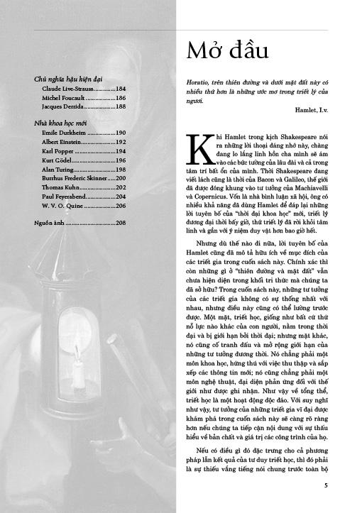 Hơn thế, với nội dung hấp dẫn, cách truyền tải dễ tiếp cận, cuốn sách sẽ đưa độc giả tiếp cận những quan điểm, tư tưởng của 100 triết gia vĩ đại trong nền triết học phương Tây, có thể kể tới như: Aristotle, Jean-Jacques Rousseau, Karl Marx, Simone de Beauvoir, Noam Chomsky, WVO Quine…