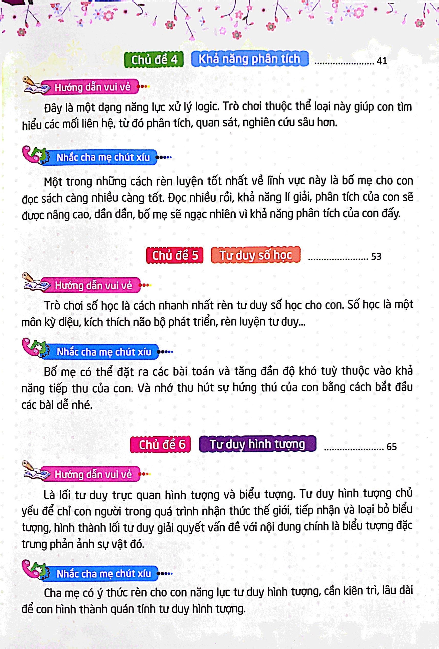 Cuốn sách gồm 1000 câu hỏi rèn luyện, giúp trẻ phát triển chỉ số thông minh IQ và chỉ số sáng tạo CQ thông qua trò chơi thú vị nhằm giúp trẻ rèn luyện các kỹ năng, tiếp thu thêm kiến thức đồng thời phát huy tối đa tiềm năng trí tuệ