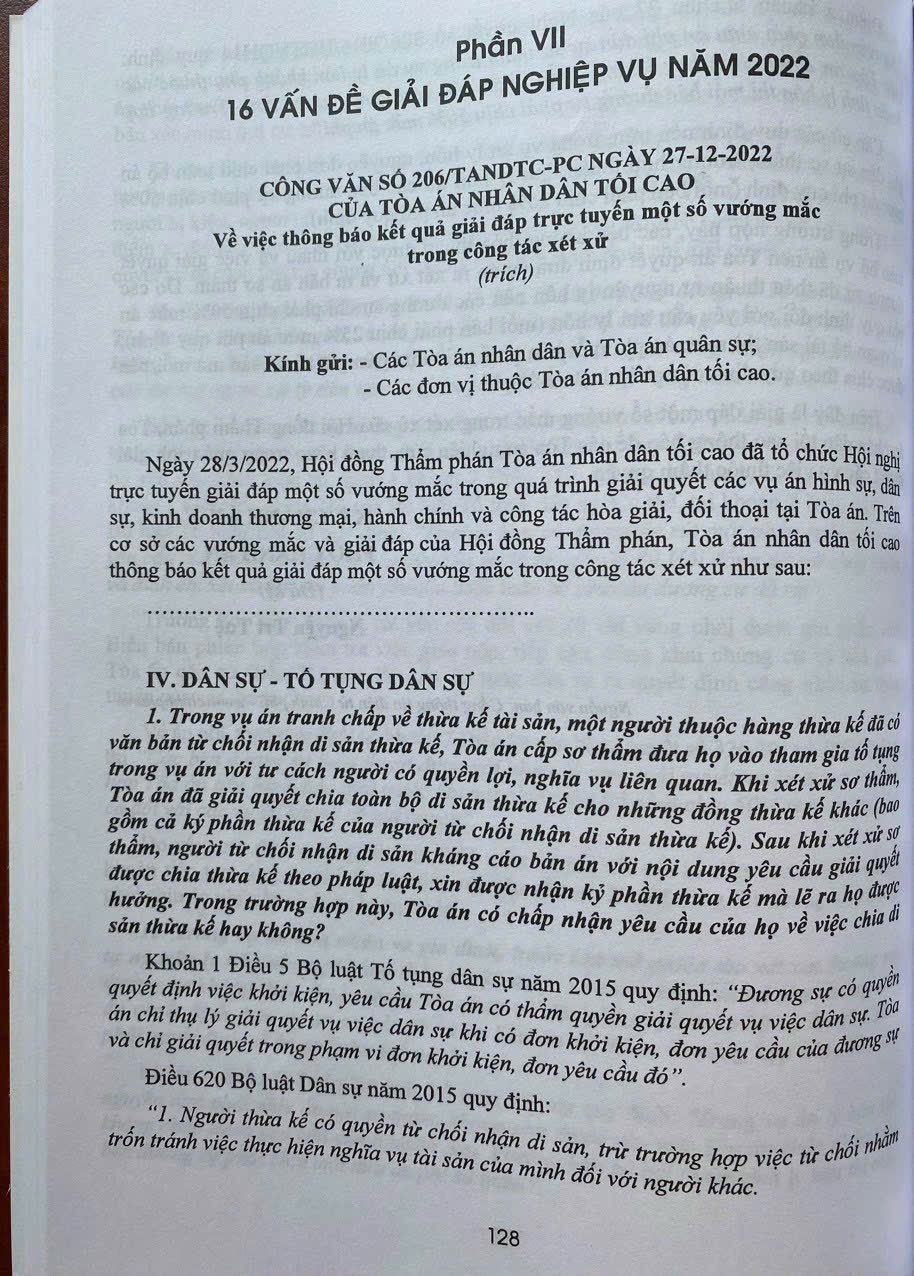 Giải đáp vướng mắc trong xét xử về Dân sự, Hình sự, Tố tụng dân sự Hành chính, Kinh doanh thương mại của Tòa án nhân dân tối cao từ năm 2016 - 2021 và