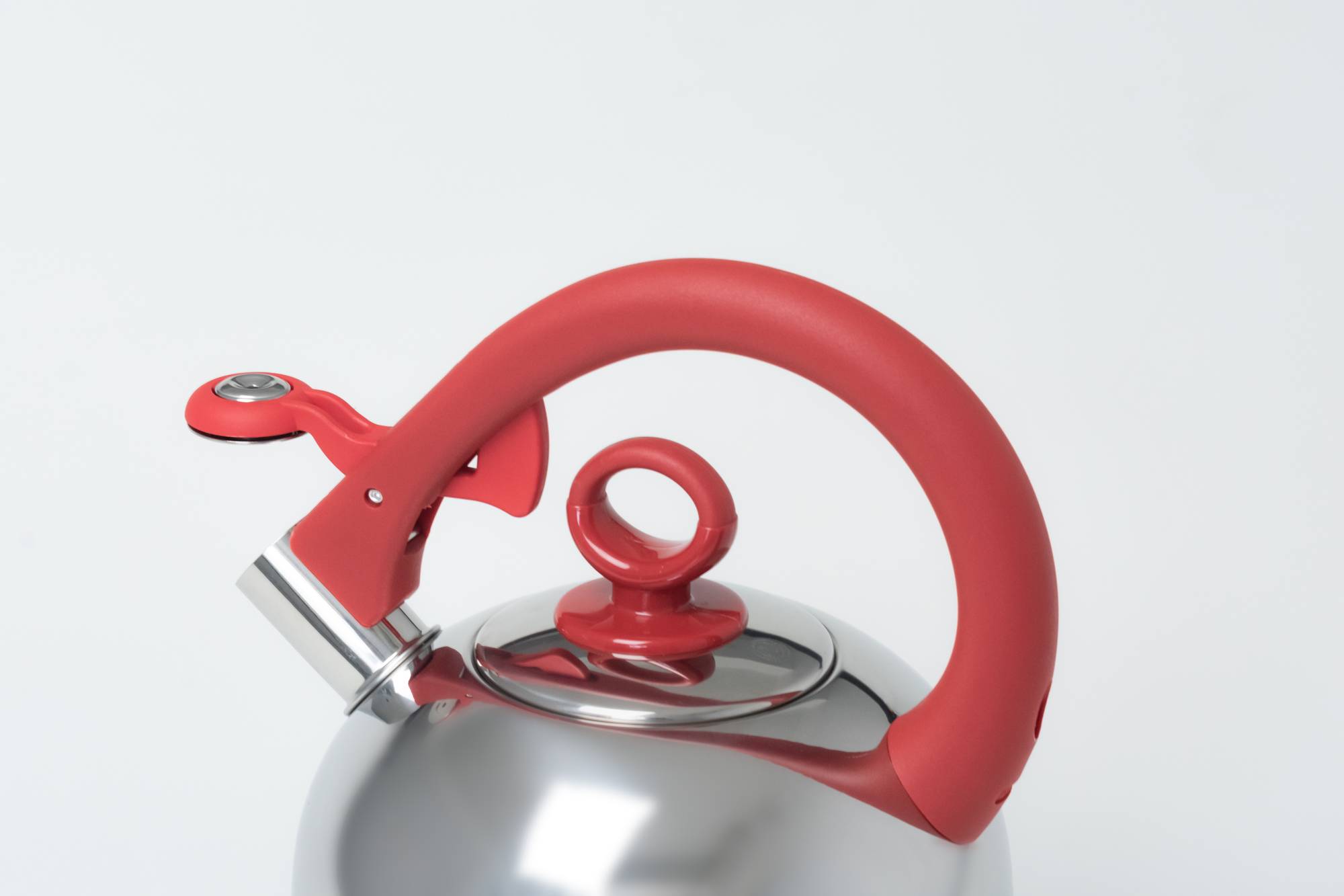 - Ấm inox có tay cầm và núm vung bằng nhựa chịu nhiệt, thiết kế dễ dàng cầm nắm.