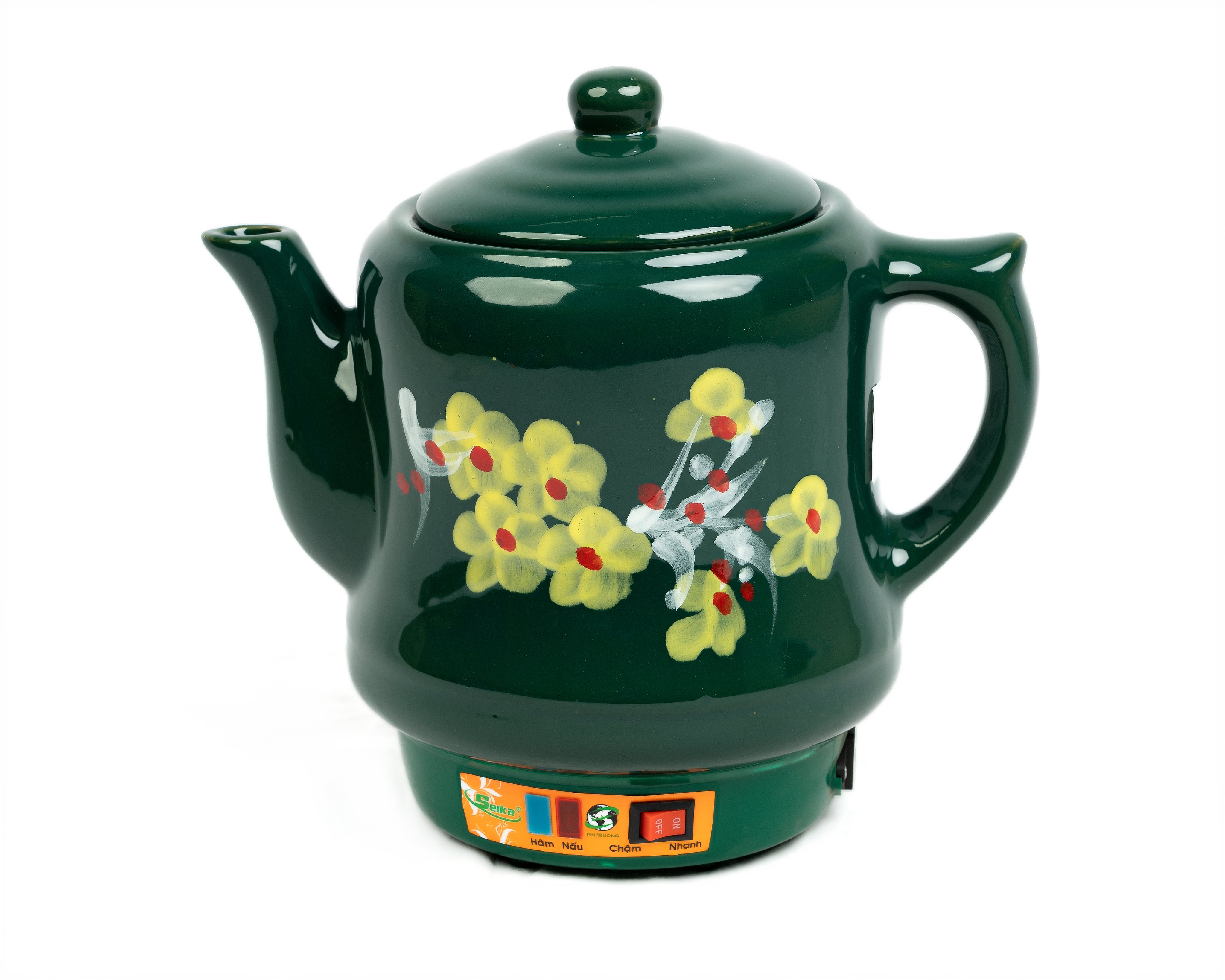 Dung tích: 2.8 L- Công suất: 450W- Thân ấm thiết kế với hoa văn ông già - củ sâm- Nguồn gốc sứ từ làng gốm Bát Tràng nổi tiếng- Chất liệu gốm được nung ở