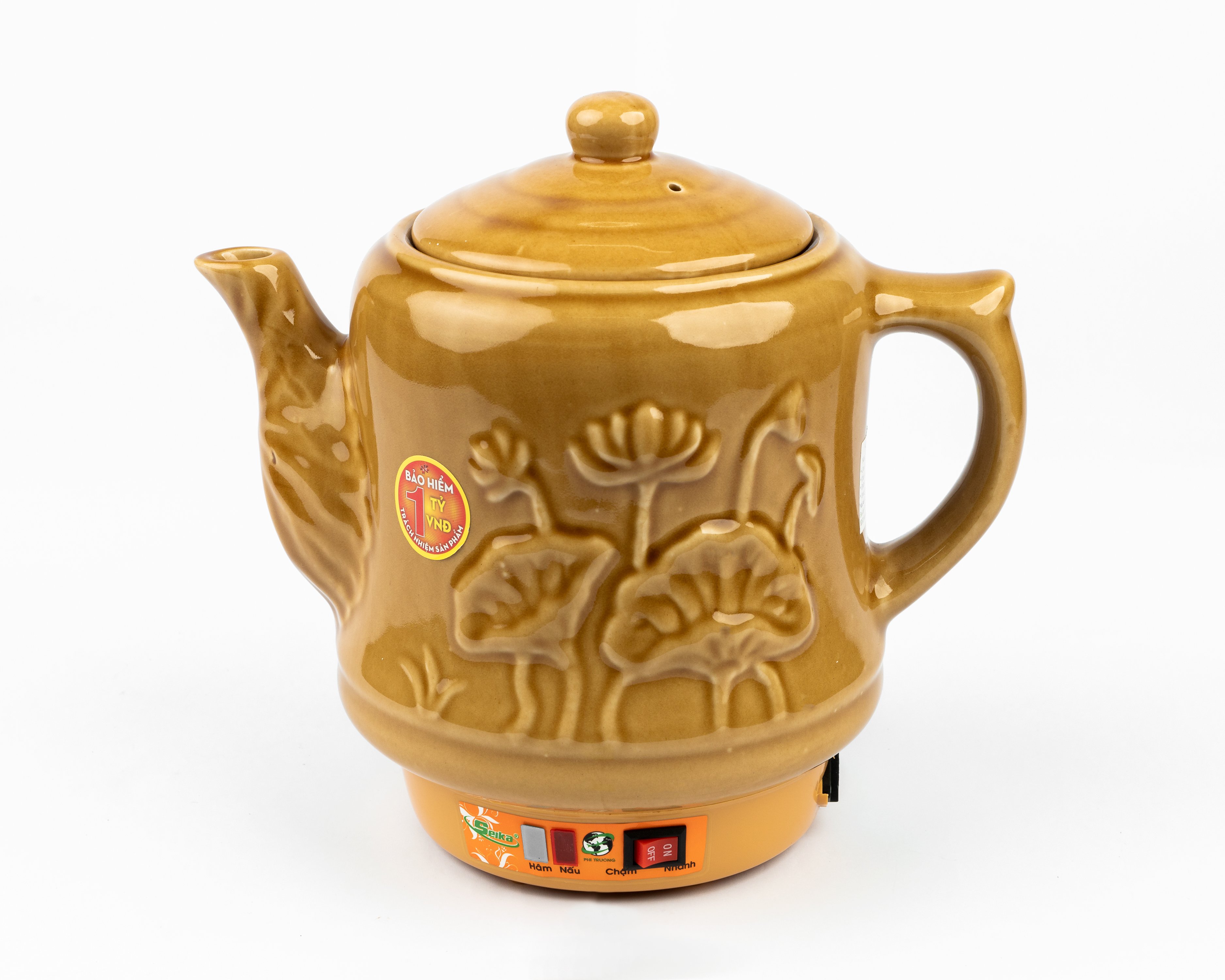 Dung tích: 2.8 L- Công suất: 450W- Thân ấm thiết kế với hoa văn ông già - củ sâm- Nguồn gốc sứ từ làng gốm Bát Tràng nổi tiếng- Chất liệu gốm được nung ở