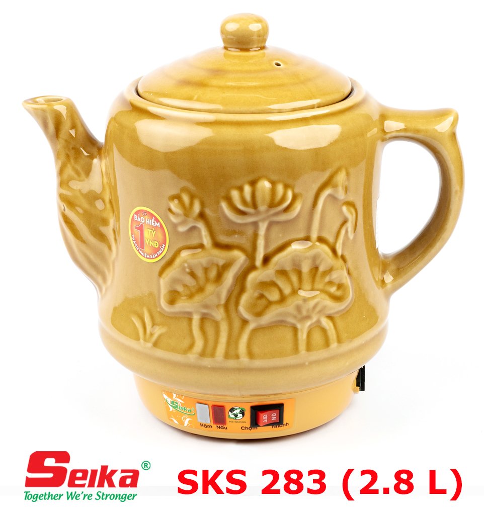 Dung tích 2.8L Ấm Sắc Thuốc Seika 2.8L - SKS280 (Gốm Sứ Bình Dương) được làm từ gốm sứ Bình Dương loại 2.8L có sức chịu nhiệt cao, bề mặt láng mịn dễ dàng vệ