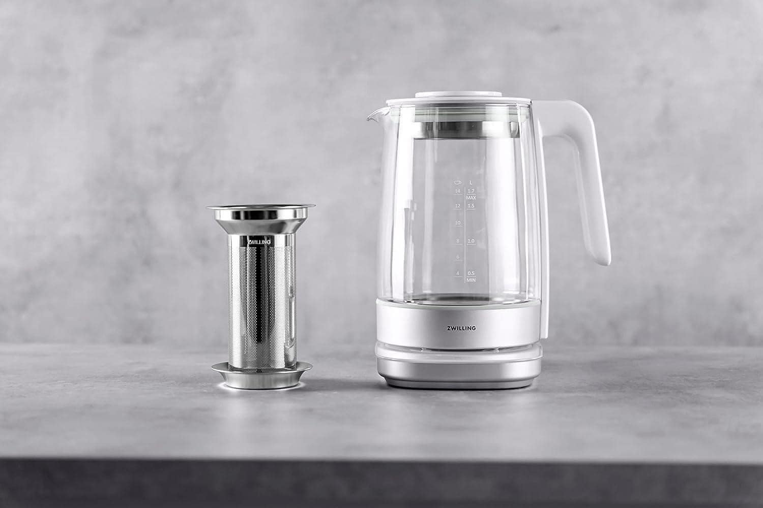 Ấm siêu tốc pha trà 2in1 Zwilling Enfinigy 1.7 L với thiết kế thanh lịch, bao gồm 10 chương trình được cài đặt sẵn và 6 mức nhiệt độ khác nhau tùy chọn (40 °C, 60 °C, 70 °C, 80 °C, 93 °C, 100 °C), đáp ứng được nhiều mục đích sử dụng