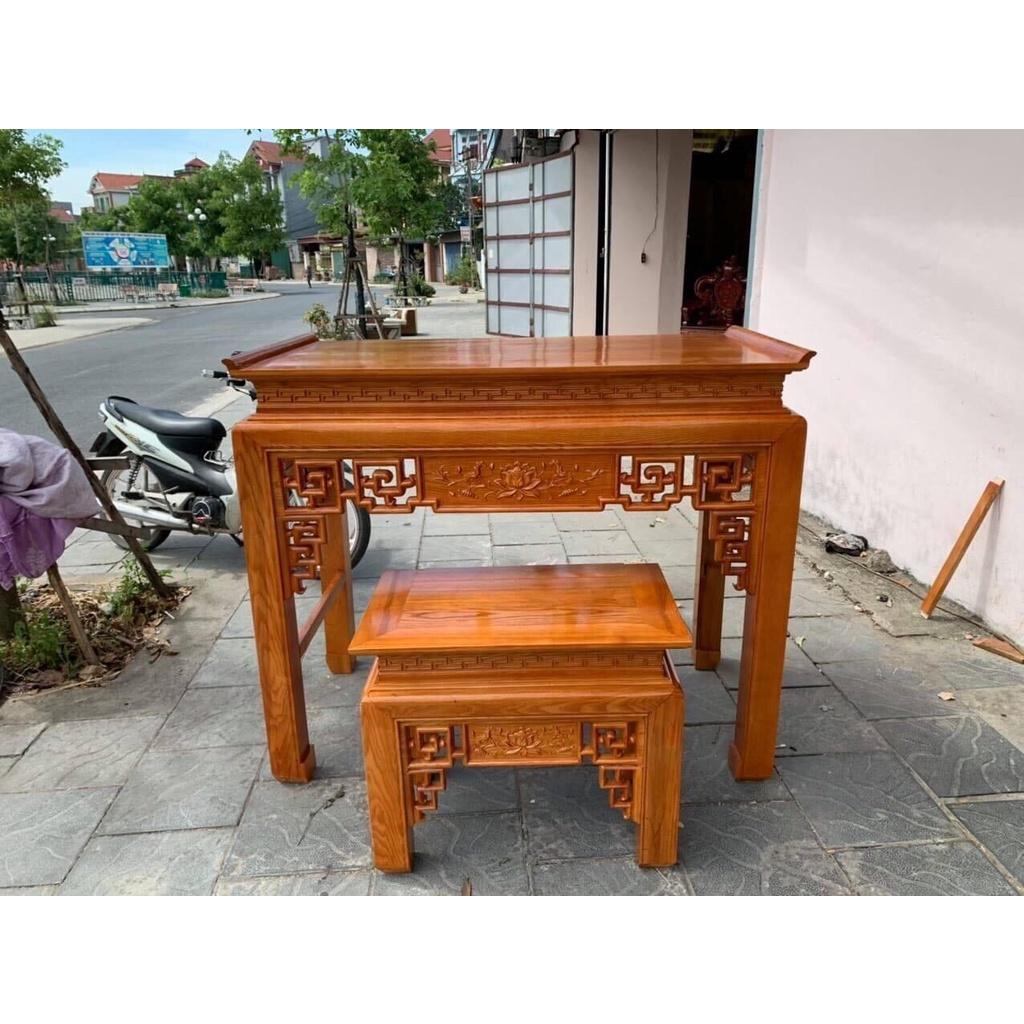 Combo Án Gian Thờ và Bàn Cơm gỗ Sồi Nga Mẫu Triện Sen Chân 10 Màu Óc Chó chỉ 10tr