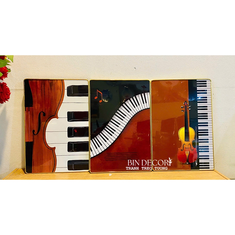 Tranh treo tường âm nhạc 24 - Kích thước của tranh : Kích thước : 25x35cmx3 tấm 30x45cmx3 tấm 40x60cmx3 tấm - Chất liệu : KIM SA - TRÁNG GƯƠNG - CANVAS - Khách hàng