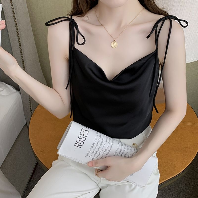 ✨Áo 2 dây cổ đổ cột nơ xinh xắn mặc trong vest, blazer vải lụa satin cao cấp mịn, mát