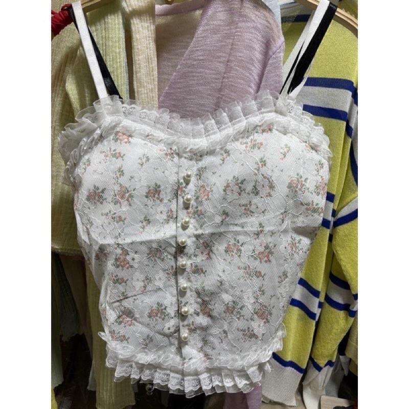 ✨Áo 2s hai dây khuy ngọc phối ren có đệm ngực