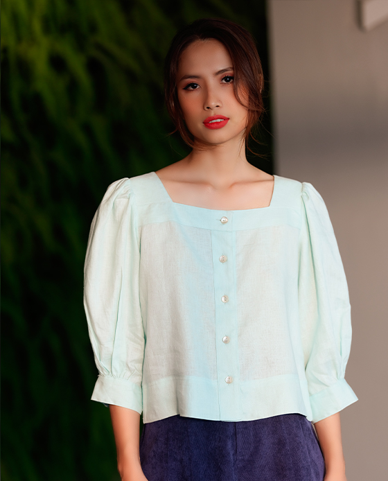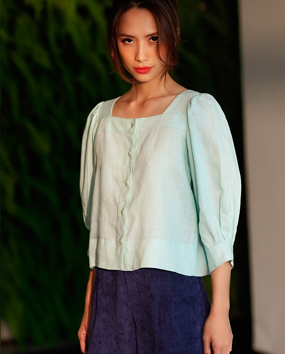 Áo Croptop Linen Aqua TOP132 Thời trang thiết kế Hity