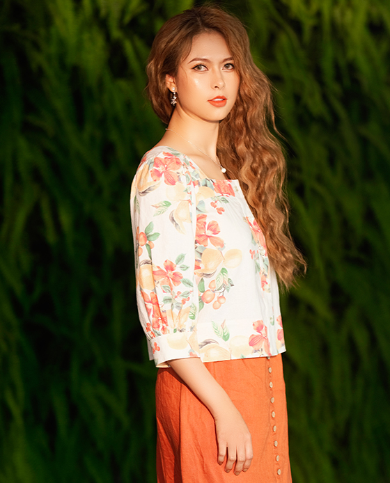Áo Croptop Linen Hibiscus TOP132 Hoa Dâm Bụt Thời trang thiết kế Hity Kiểu dáng áo suông rộng ngắn ngang lưng quần croptopCổ vuôngTay phồng nhún vaiCài bằng hàng nút phía trướcCHẤT LIỆULinenNú...