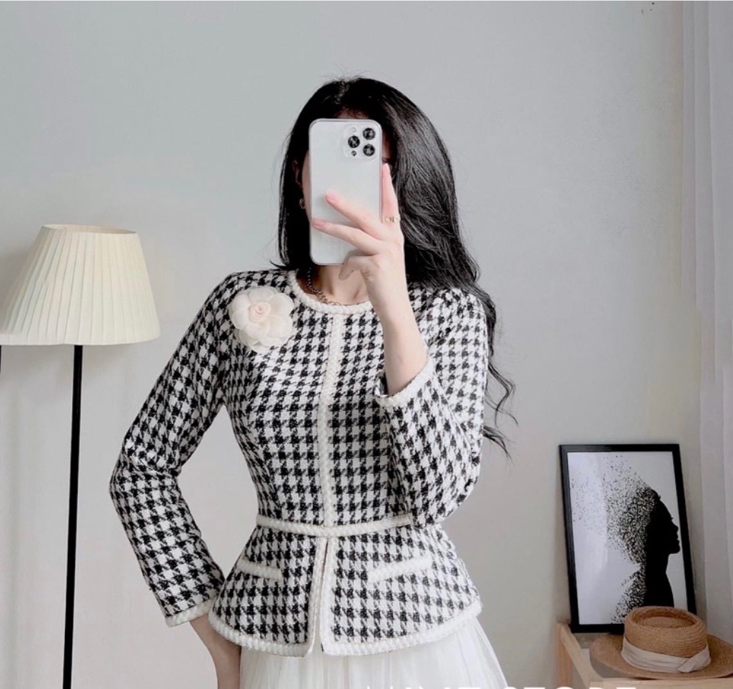 Hàng của Shop là hàng cao cấp, chất liệu dạ tweed dày dặn, 2 lớp, có lớp lót bên trong mặc không hề dặm ngứa, khó chịu. Vải được dệt xen kẽ giữa các sợi đen và trắng là các sợi kim tuyến cao cấp, khi mặc bắt sáng sẽ vô cùng sang, khác hẳn hàng loại rẻ tiền loại 2, loại 3, chỉ dệt có sợi đen và trắng thôi Khách nha.
