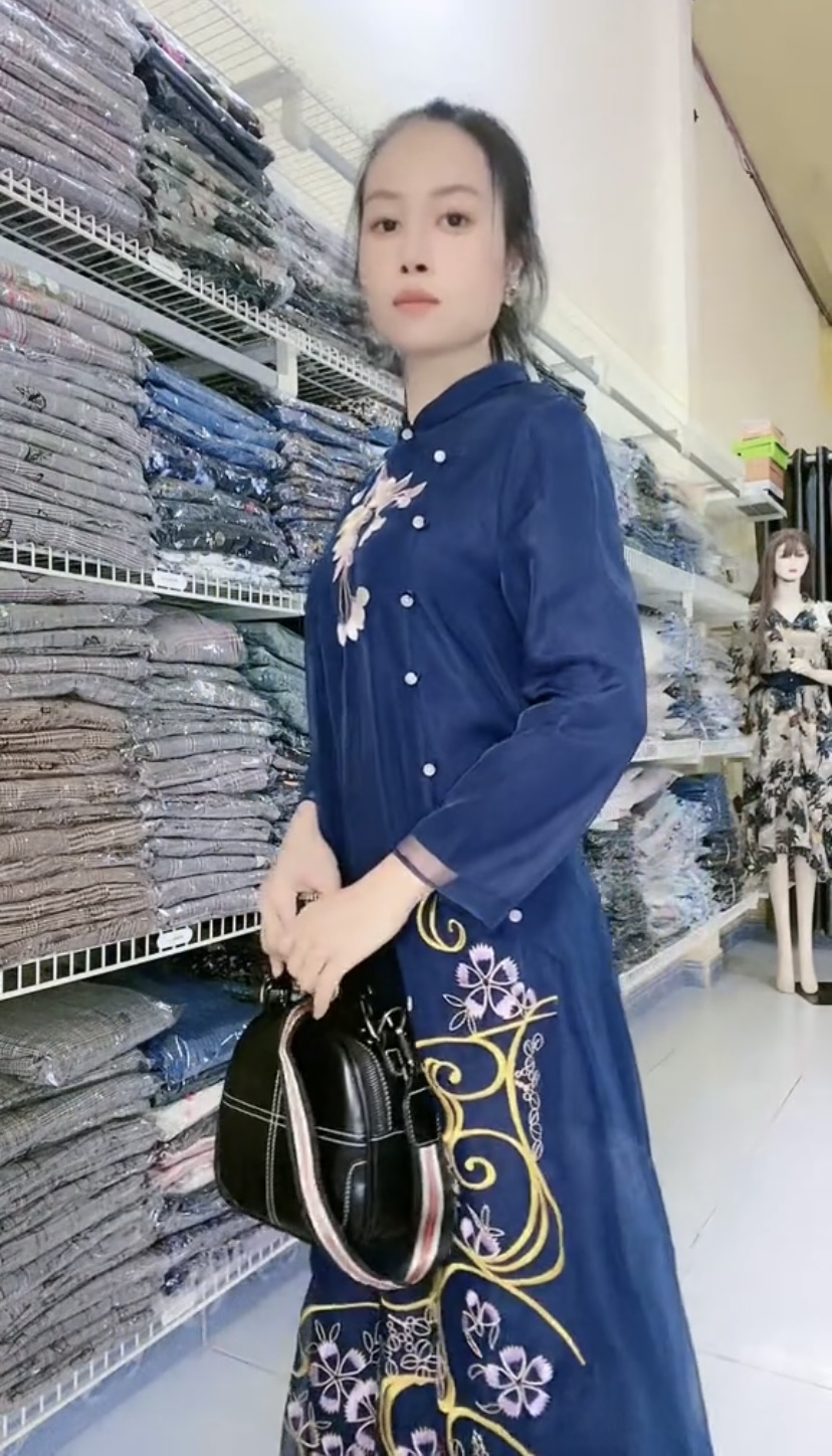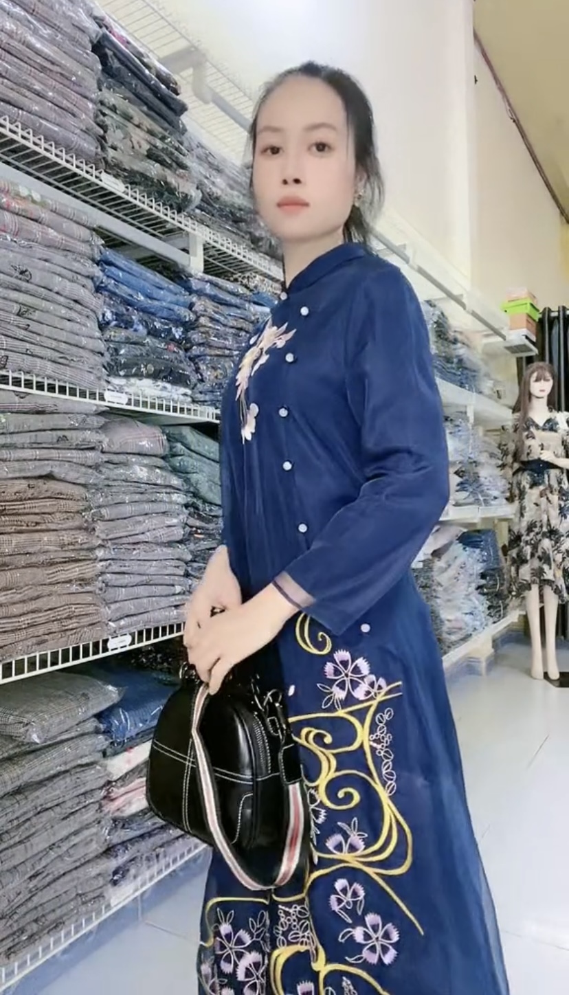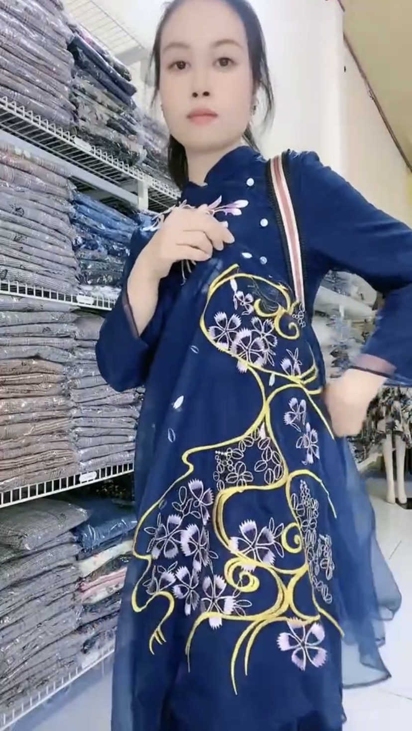 Đầm form dáng áo dài cách tân Mã: DLBG001 Màu: Dark blue Chất liệu: Polyester, spandex Số đo V1/V2/V3(cm): Gợi ý phối đồ: Có thể diện như đầm hoặc mix với quần lụa mặc như áo dài.