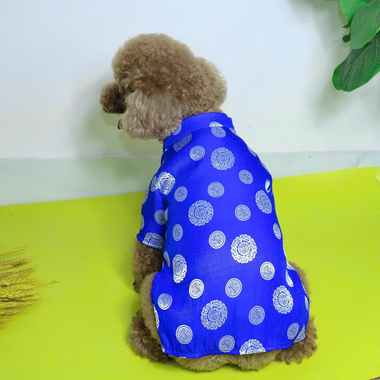 ÁO DÀI TẾT GẤM THÁI CAO CẤP TỪ 0.5-15KG DÀNH CHO THÚ CƯNG CHÓ MÈO 1. Thiết kế : Áo Tết gấm thái cao cấp, mát, bền, đẹp, dễ thương. In hình đồng tiền dễ