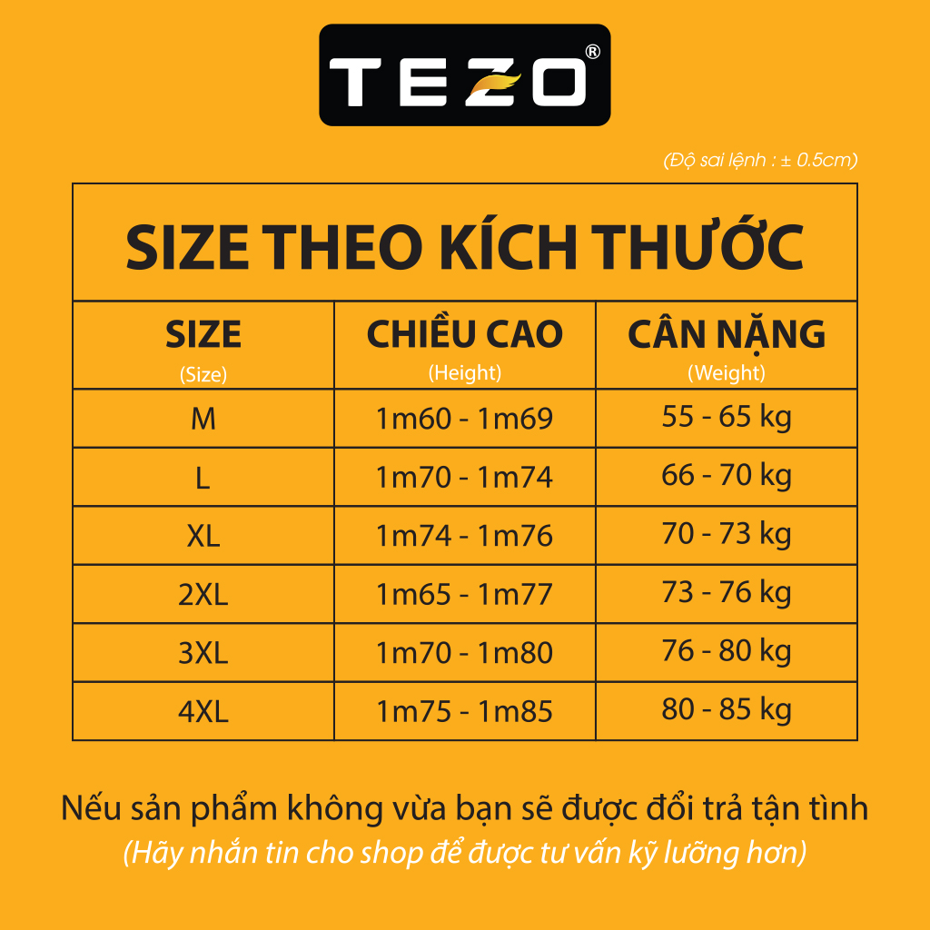 - Đổi / Trả hàng miễn phí 30 ngày bất kể lý do gì. Hãy nhắn tin cho Tezo ngay khi gặp vấn đề.