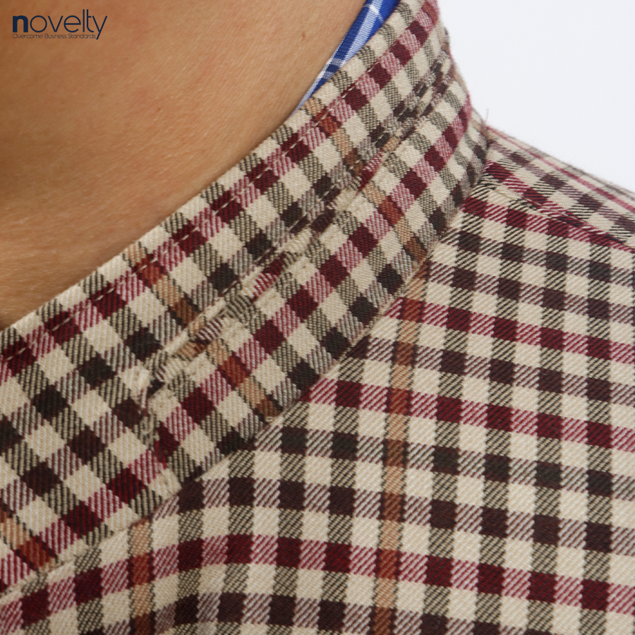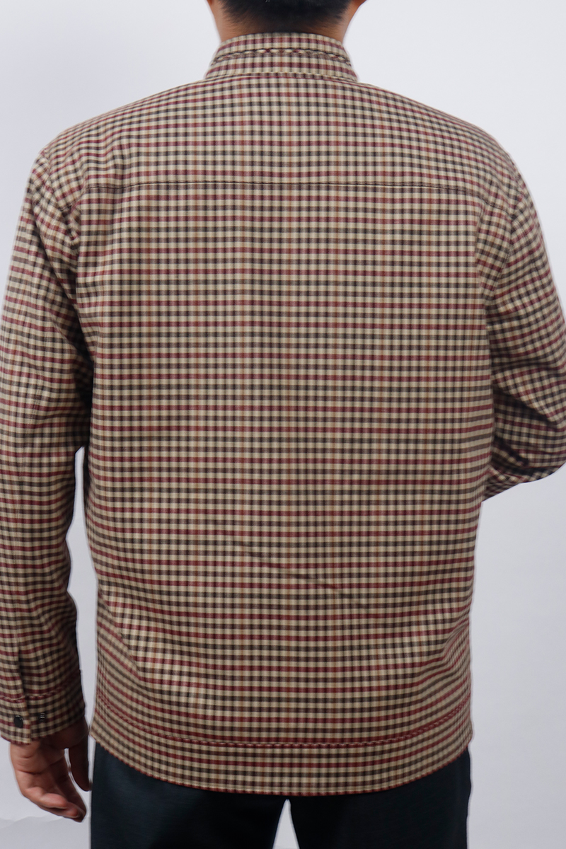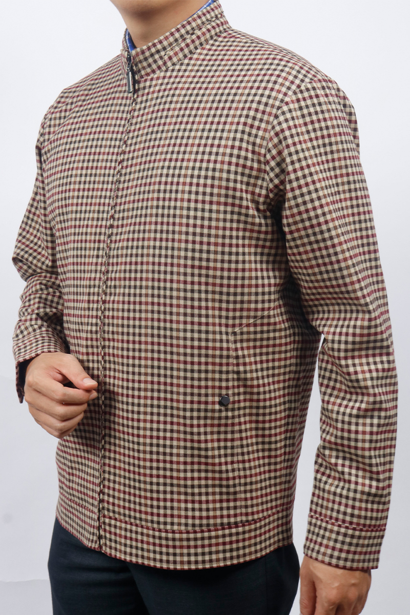 Áo Jacket nam 2 lớp cổ trụ Novelty Casual xanh caro nhỏ màu nâu NJKMCNMT3B2305242