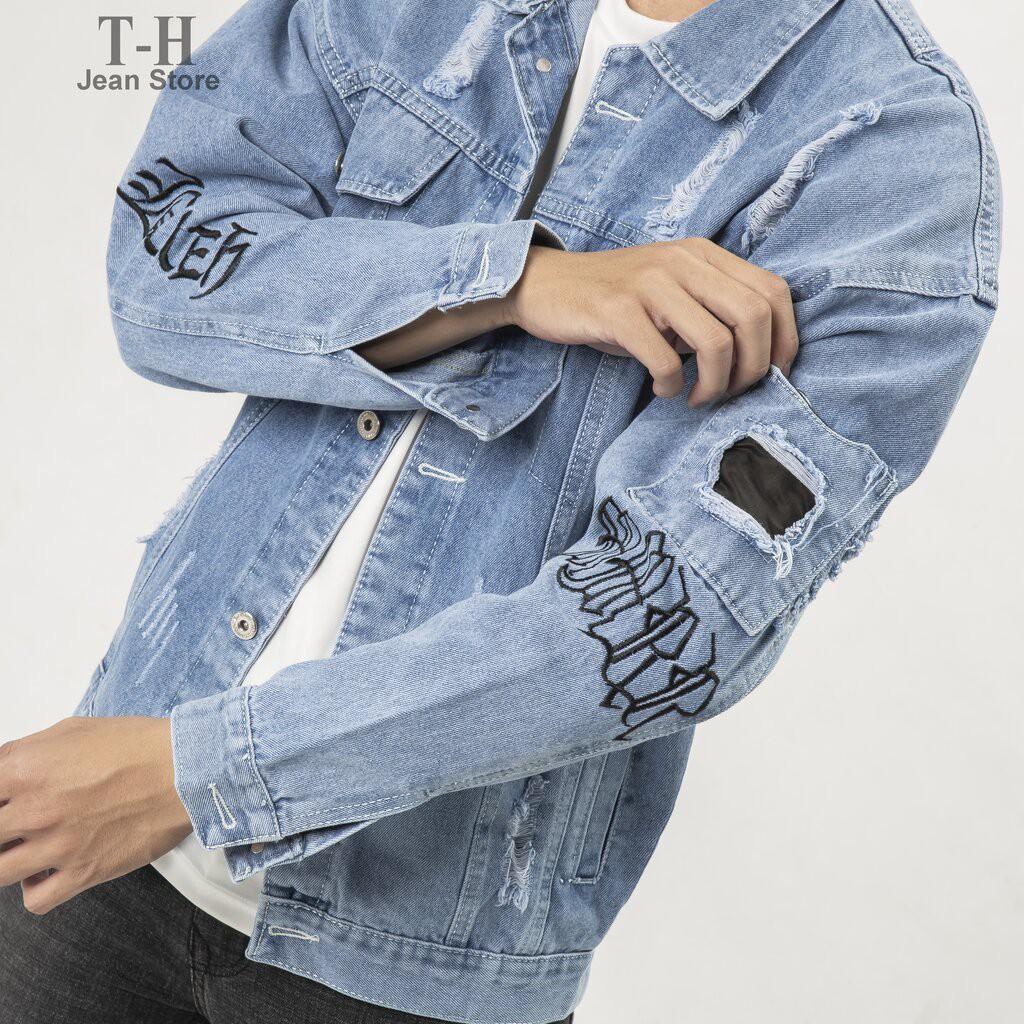 ✨Áo jean nam rách thêu chữ hellobicht phong cách