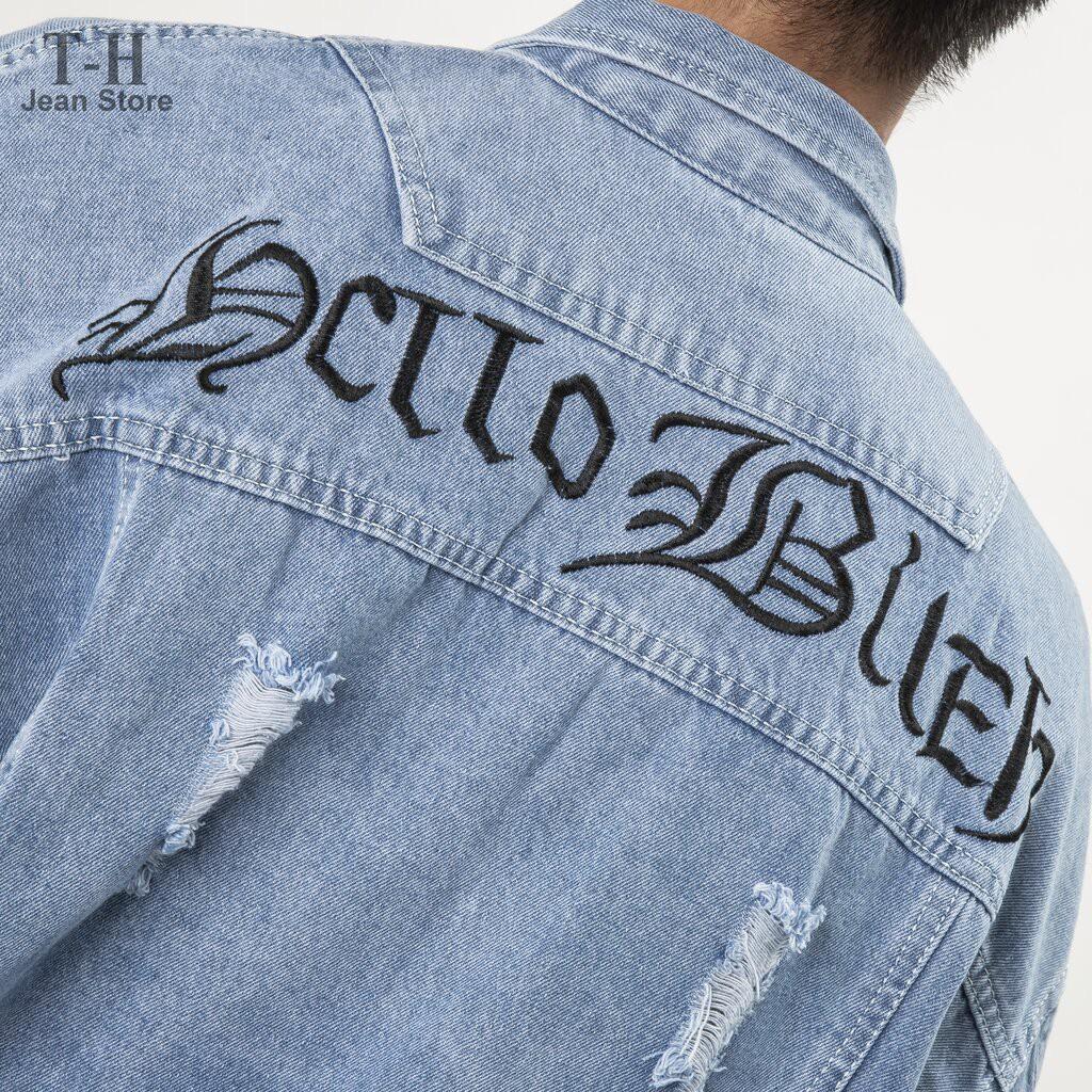 Áo Khoác Nam Jeans Cao Cấp HUNTER X-RAYS Form Straight Cotton Màu Xanh Wash Rách – Hunter X-Rays K11 Đặc điểm nổi bật: Nút được đúc nguyên khối bằng đồng và nổi bật thương hiệu
