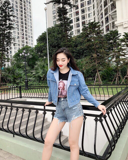 Áo khoác jean nữ croptop basic phong cách Hàn Quốc | Denim jacket nữ - order áo khoác denim