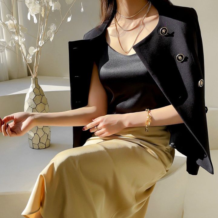 Áo hai dây camisole cơ bản, là chiếc aó thiết yếu mà mỗi người phụ nữ đều cần. Mặc lót bên trong, mặc phối cùng áo vest, mặc phối cùng quần shorts váy ngắn đi