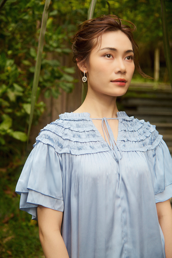 Nhấn các đường nhún thủ công tinh xảo quanh cổ