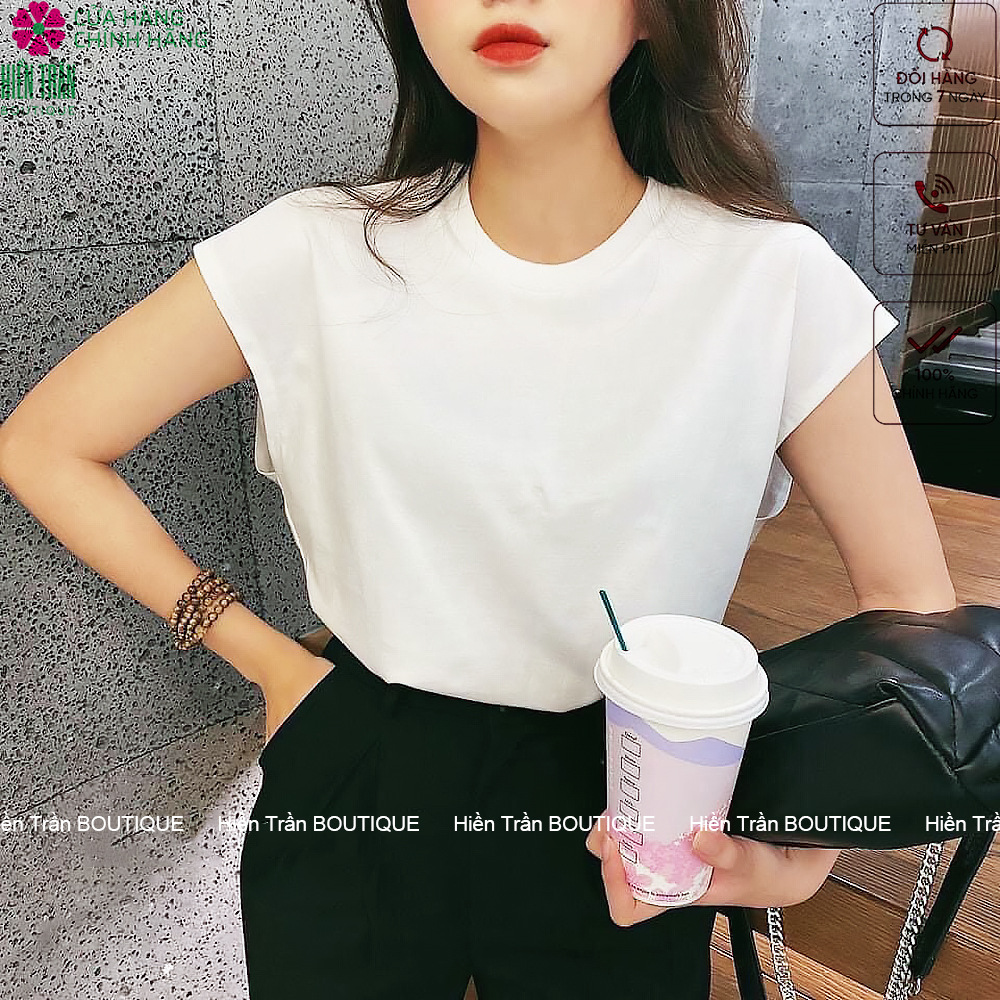 ✨Áo phông nữ Hiền Trần BOUTIQUE cổ tròn tay hến form đẹp thun trơn co giãn tốt màu đen trắng thời trang basic
