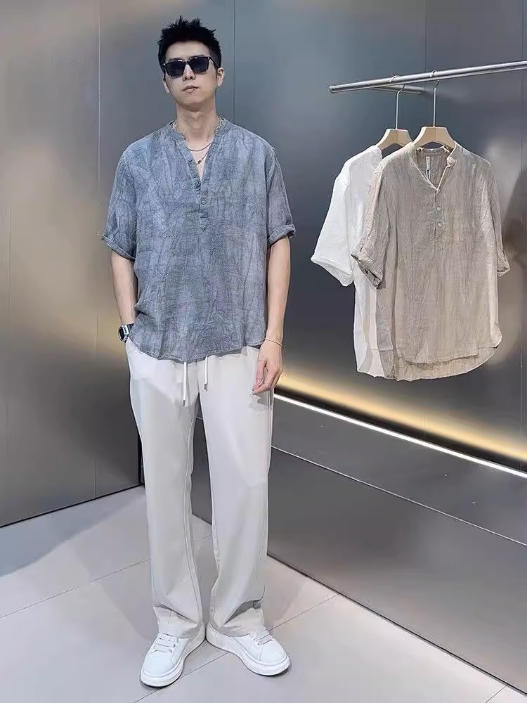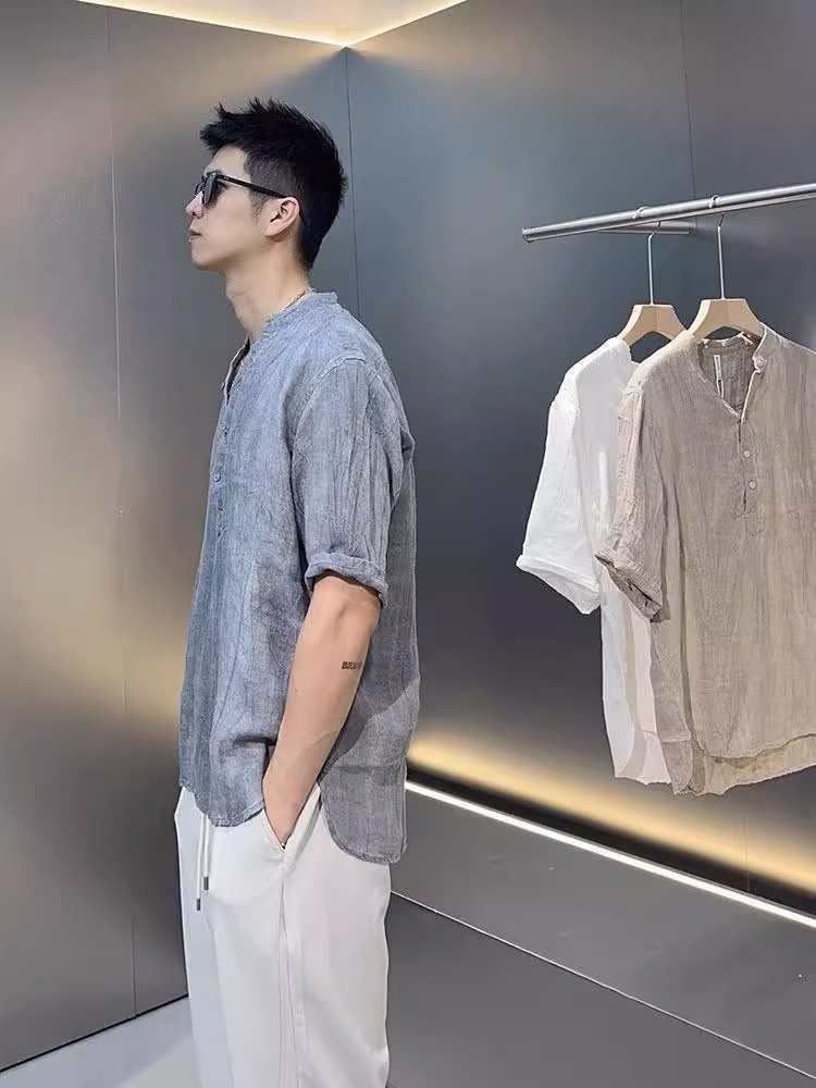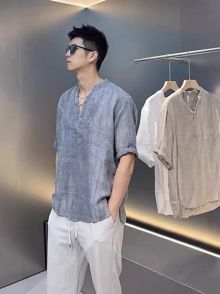 ✨Áo sơ mi đũi nam retro ngắn tay cổ tàu mẫu mới cao cấp