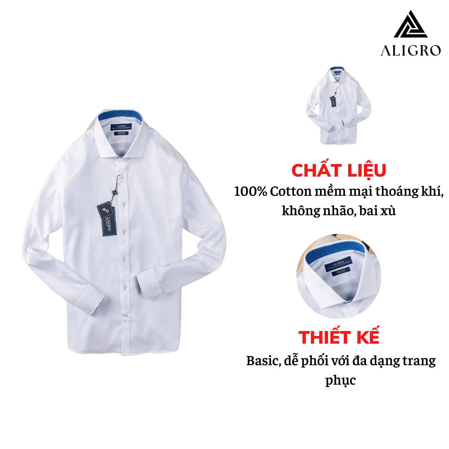 ✨Áo sơ mi nam dài tay ALIGRO cổ bẻ dáng ôm body 100% chất cotton màu trắng phối ALGS190