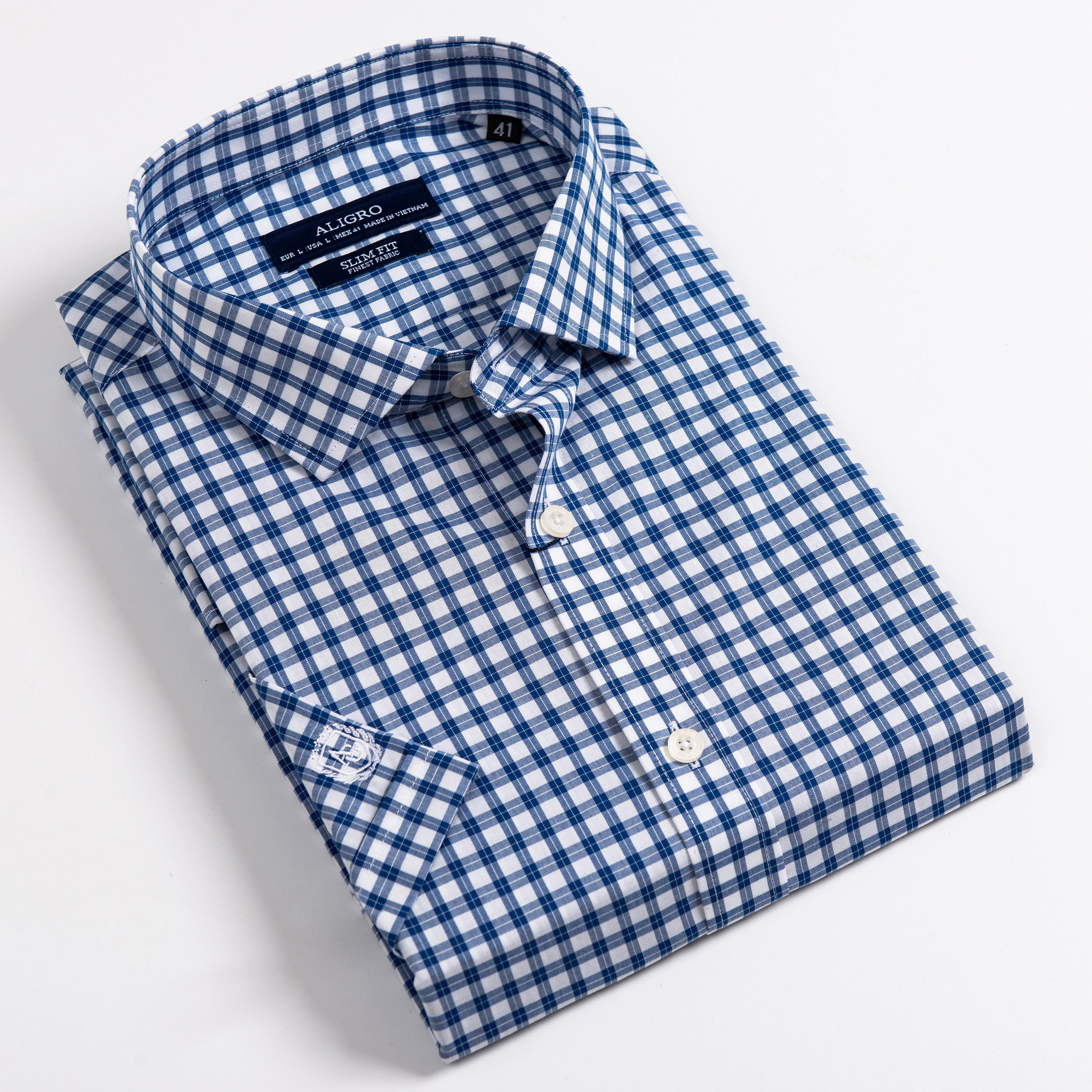 ÁO SƠ MI NAM DÀI TAY KẺ CARO XANH TRẮNG ALIGRO ALGS176