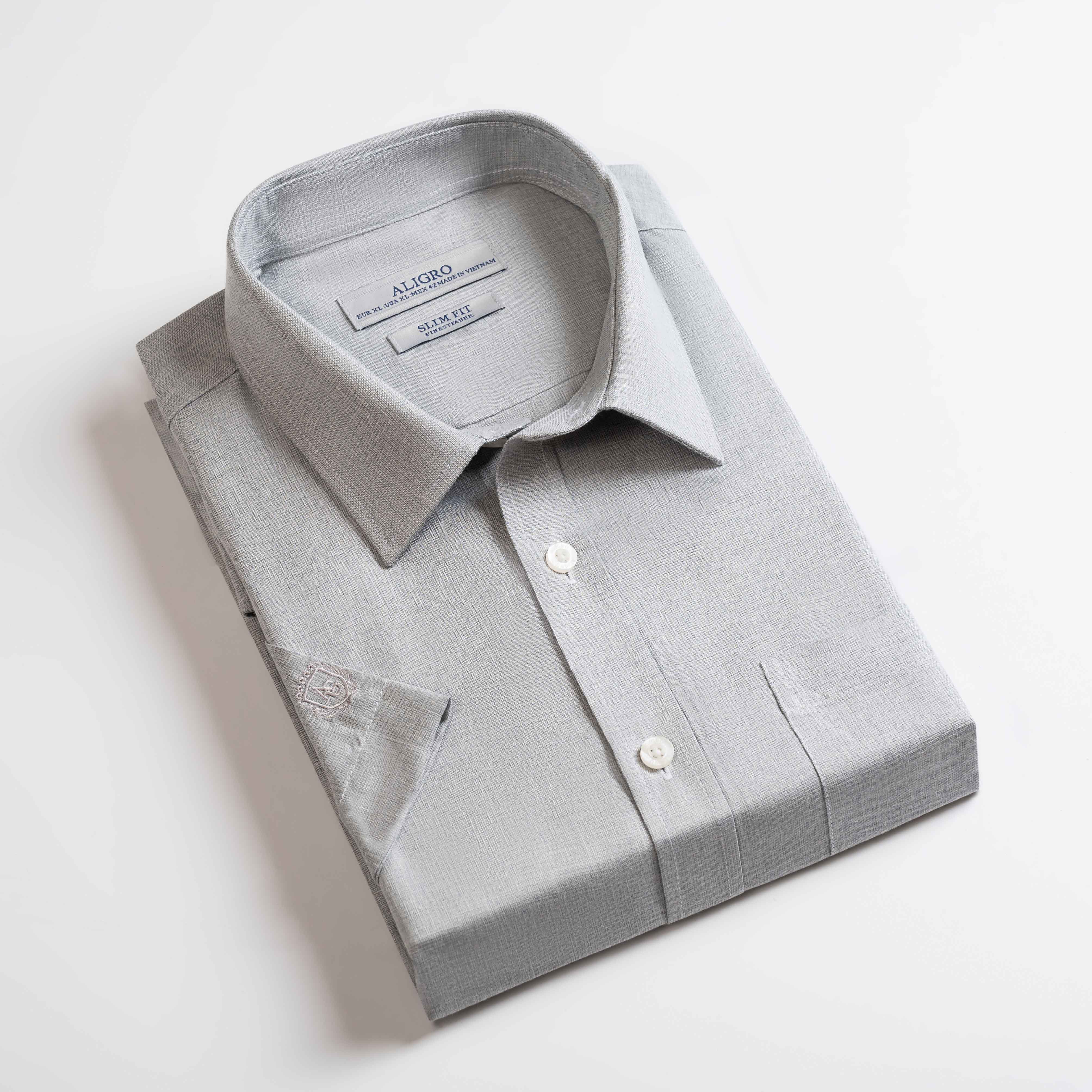 ✨Áo sơ mi nam ngắn tay ALIGRO màu ghi phẩy sước nhẹ, sợi tre bamboo mềm mại, hạn chế nhăn nhàu, form slim vừa ALGS-C122