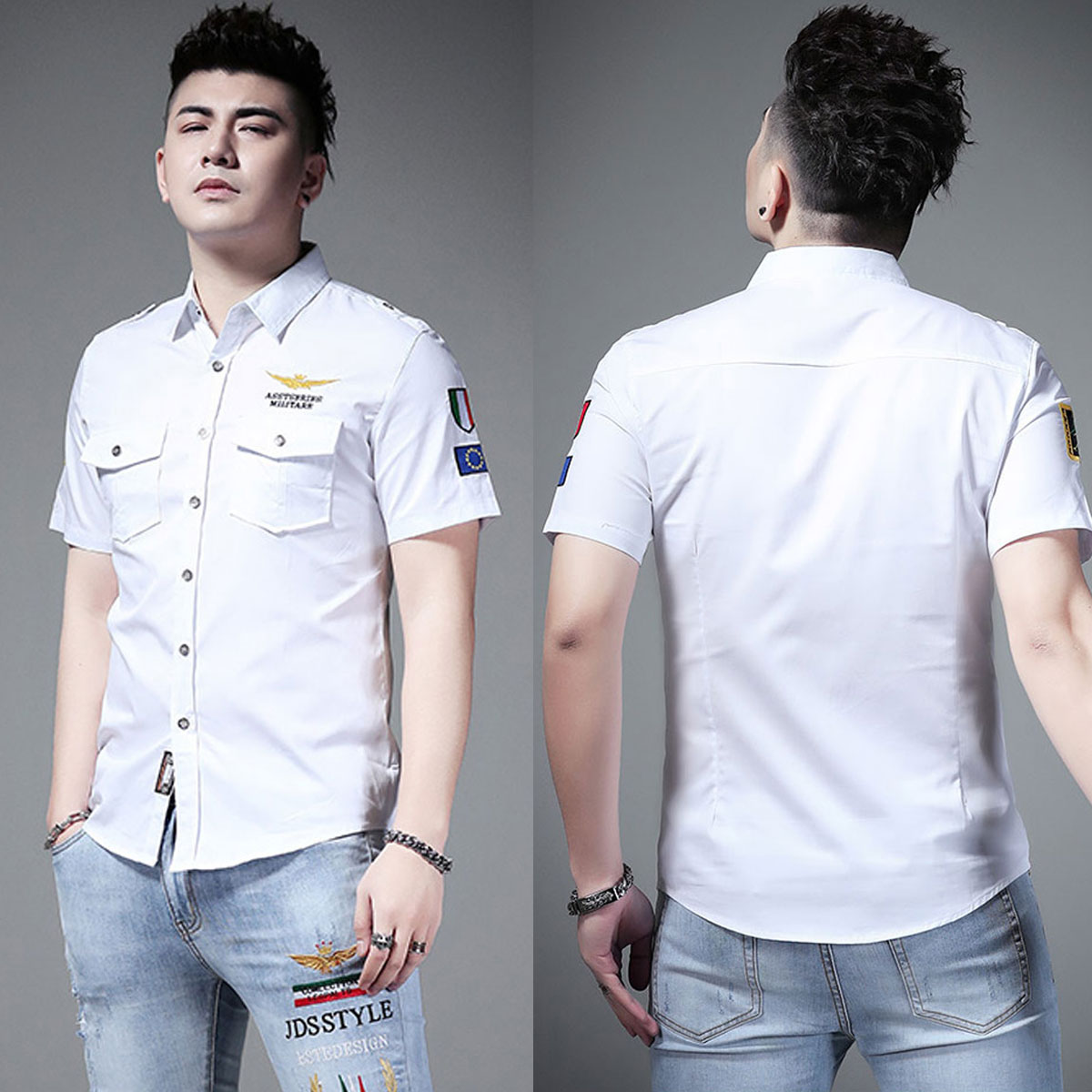 - Dáng áo sơ mi ôm sát cơ thể, đặc biệt là cổ áo và dáng lưng áo ôm nhẹ giúp tôn dáng người mặc trông trẻ trung nam tính