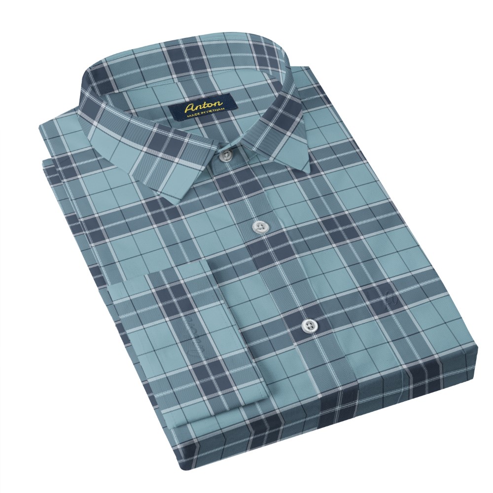 ✨Áo Sơ Mi Nam Trung Niên Công Sở Anton Somianton Dài Tay Vải Sợi Tre Kẻ Caro - AC07