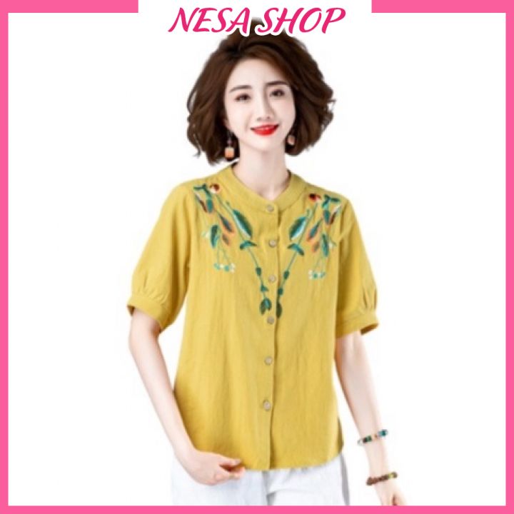 Áo sơ mi nữ trung niên cao cấp tặng mẹ chất liệu mềm mát form rộng bigsize che khuyết điểm NeSa Shop