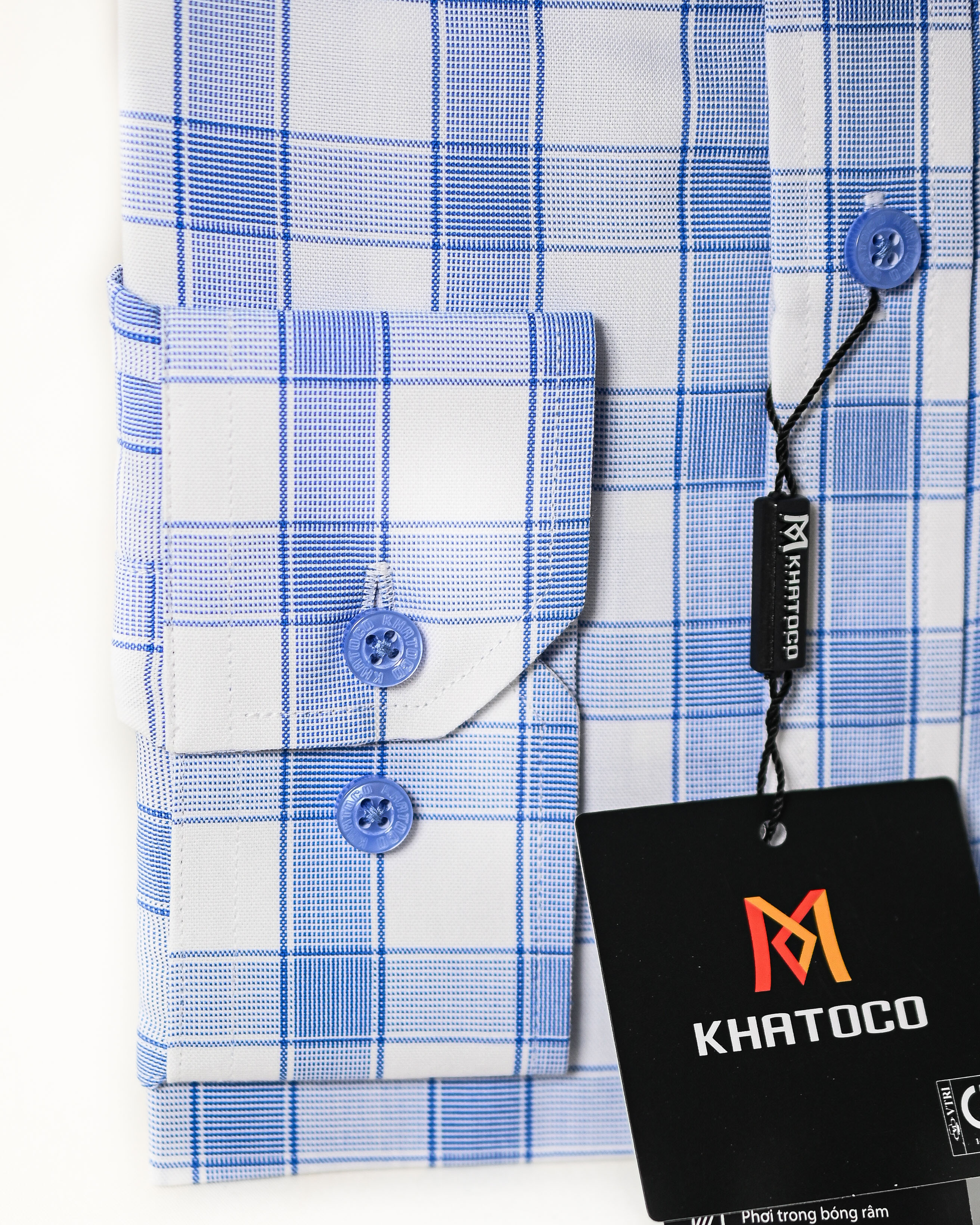 Khởi động ngày mới cùng Thời trang Khatoco Áo sơ mi kẻ caro xanh trắng với sự kết hợp màu sắc hài hòa giữa xanh trời nhẹ nhàng, chút trắng tinh tế đem lại sự