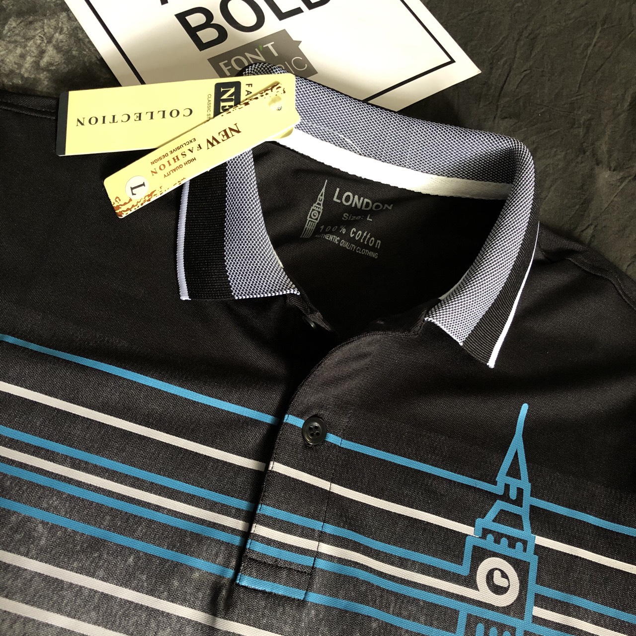 ✨Áo Thun Nam Ngắn Tay Cổ Bẻ Họa Tiết Ngang Ngực Lịch Lãm Bắt Mắt - LZPS130