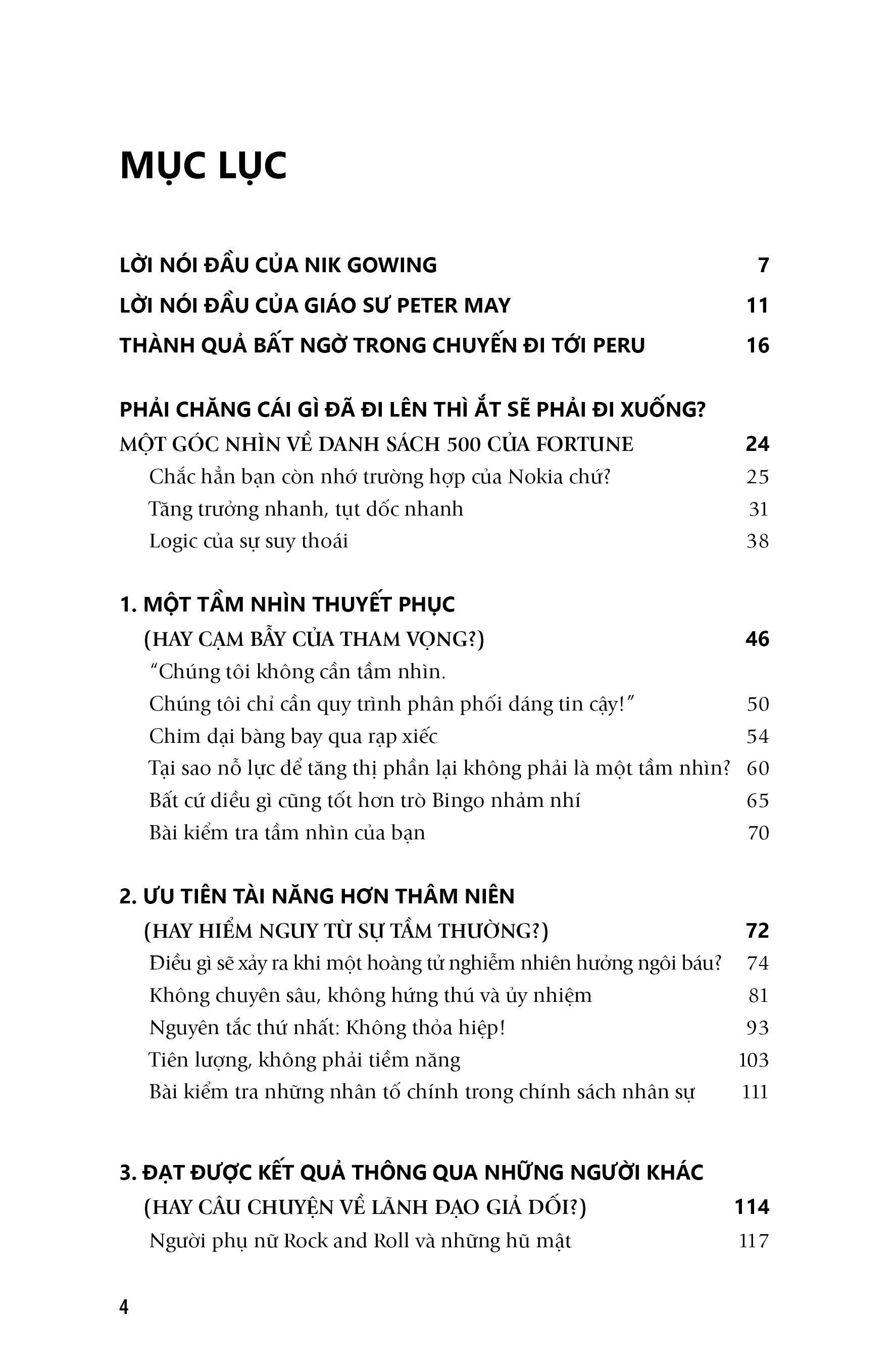 nhìn sâu sắc về câu chuyện thành công của các doanh nghiệp. Trong đó, có thể kẻ vô danh đột nhiên hóa rồng và tưởng như sẽ trở nên bất khả chiến bại. Tuy nhiên, chẳng cần tìm kiếm đâu xa để nhận ra một thực tế: hầu hết các doanh nghiệp đều rơi vào cái bẫy của sự phát triển, họ vươn lên vị trí đỉnh cao để rồi sau đó chuốc lấy thất bại thảm hại hoặc giá trị công ty tụt dốc không phanh. Liệu có ai ngờ tới sự sụp đổ của những gã khổng lồ như: Daimler, Grundig, Nokia, AOL, Pan Am, Woolworth, Blockbuster, Kodak và G Hay khi nhìn vào bảng xếp hạng Fortune 500, Eurostoxx, DAX hoặc các doanh nghiệp gia đình, chúng ta dễ dàng nhận ra rằng hiếm khi các doanh nghiệp, dù lớn hay nhỏ, có thể liên tục duy trì thứ hạng cao trong một vài thập kỉ.