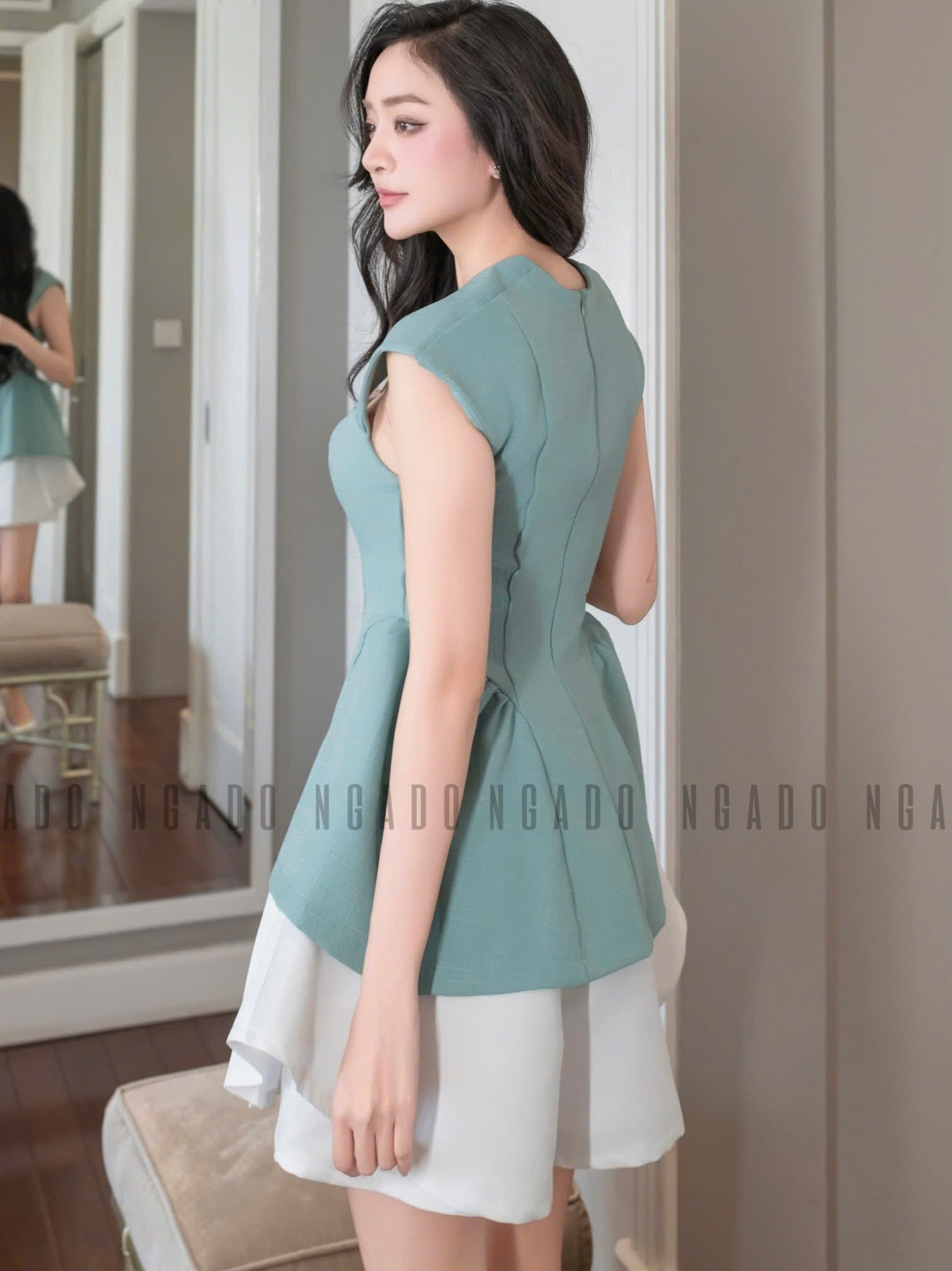 ✨Áo xanh mint chiết eo NGADO , áo kiểu , áo chiết eo