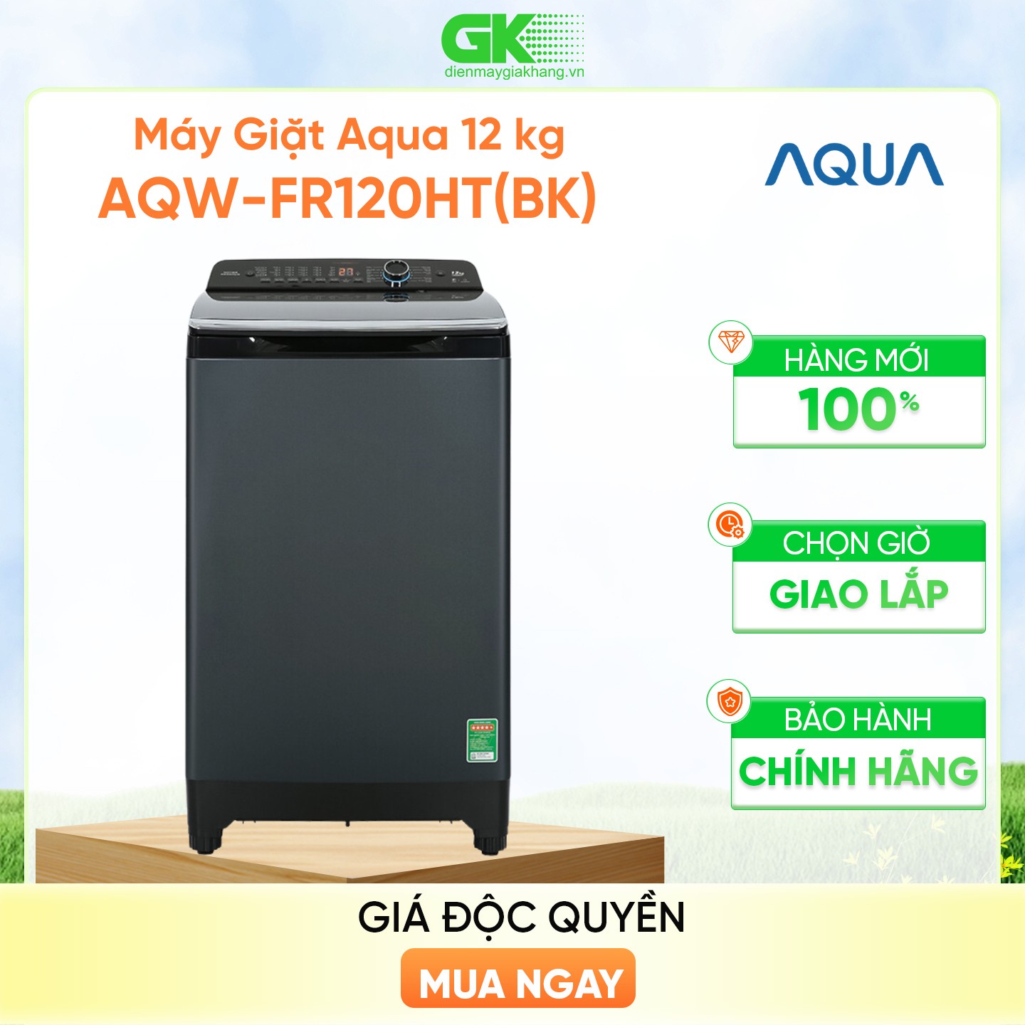 ✨AQW-FR120HT(BK) - Máy giặt Aqua 12 kg AQW-FR120HT BK - Hàng Chính Hãng