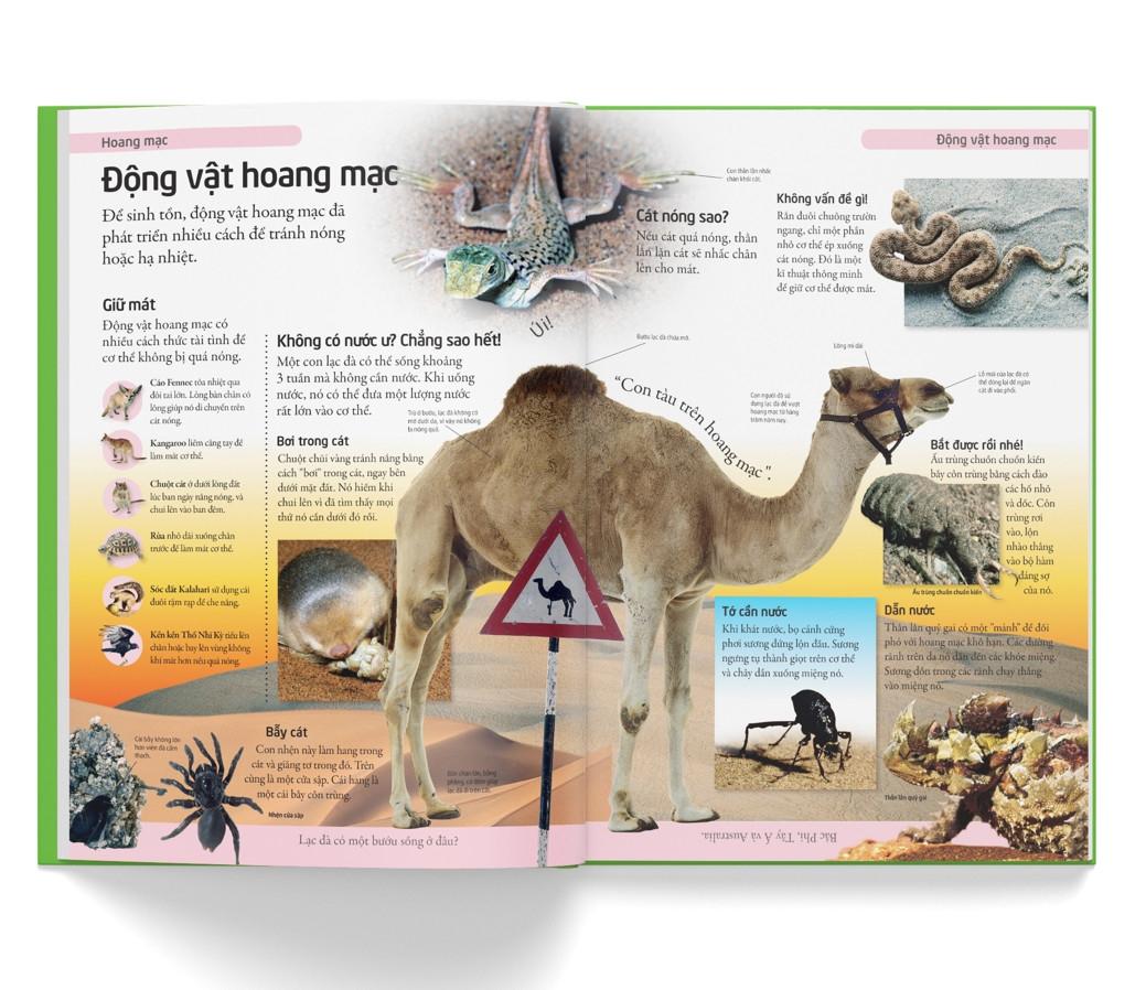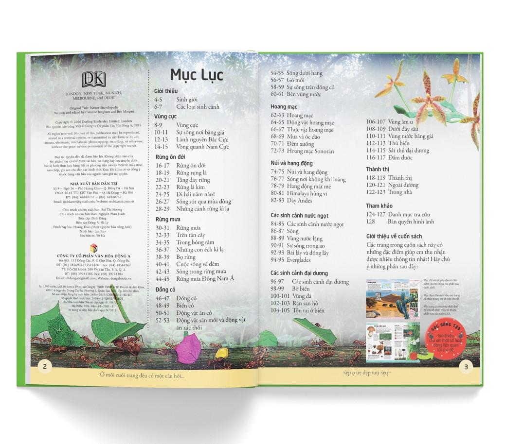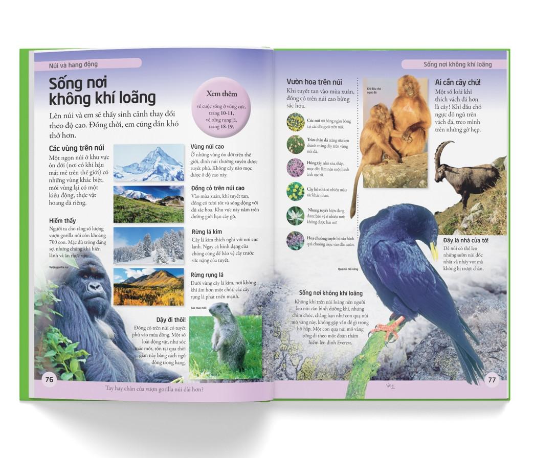 Với các hình minh họa trực quan sinh động, bắt mắt, cuốn sách cung cấp một lượng kiến thức phong phú, súc tích, dễ hiểu, cùng những câu hỏi vui, mẩu thông tin thú vị về thế giới xung quanh. Em sẽ được biết đến cách các loài động thực vật sinh tồn thế nào ở mọi nơi trên Trái đất, từ những hoang mạc khô cằn, tới những cánh rừng mưa tươi tốt.