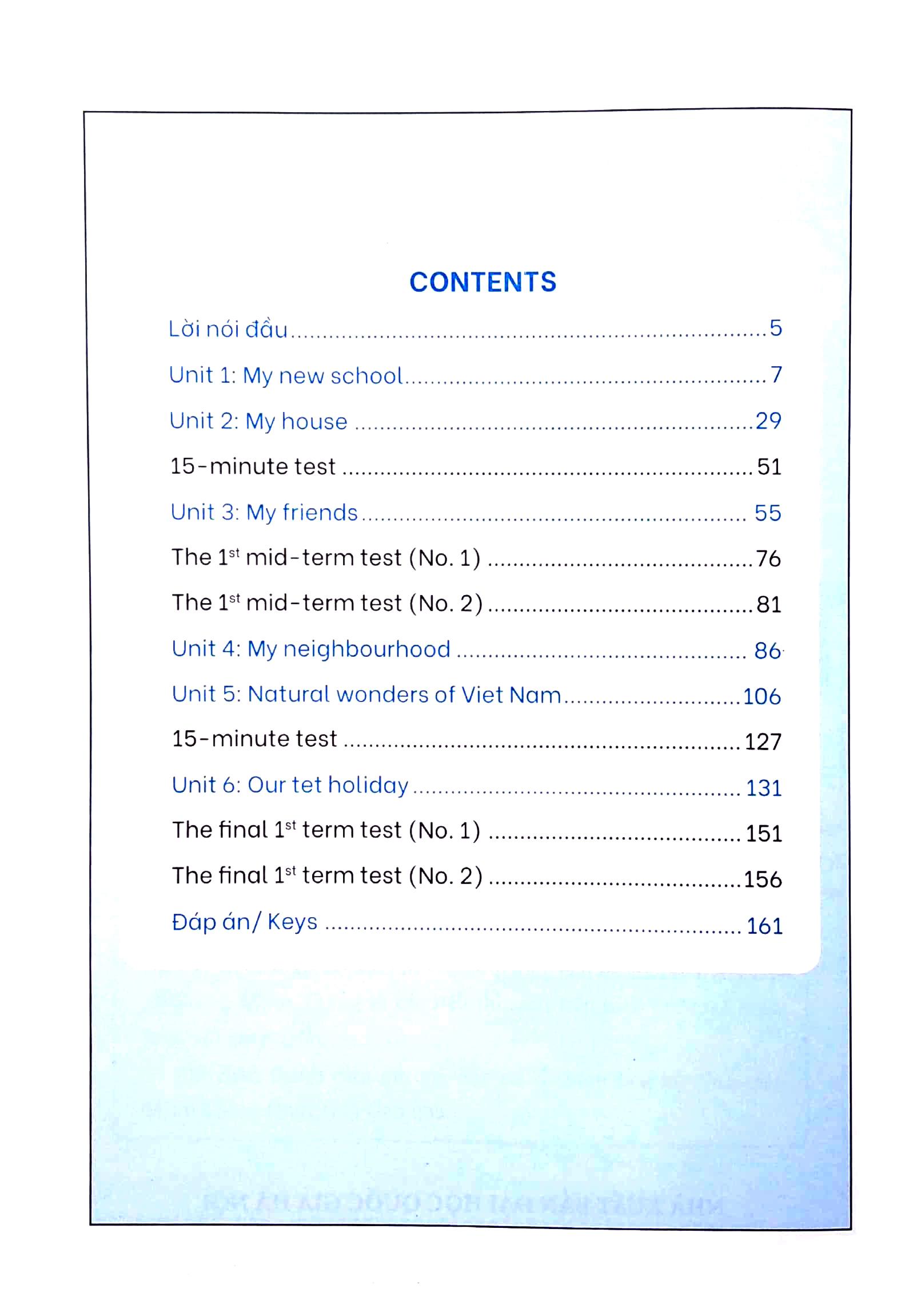 Bài Tập Bổ Trợ Và Nâng Cao Tiếng Anh Lớp 6 - Tập 1 (Có Đáp Án) Cuốn sách được chia thành các đơn vị bài học bám sát chương trình mới nhất của Bộ giáo dục và Đào tạo . Đây không chỉ là tfai liệu bổ trợ giúp các em củng cố kiến thức cơ bản sau các bài học trên lớp , mà còn là công cụ hỗ trợ các em không ngừng mở rộng và nâng cao kiến thức. át âm - trọng âm 2.Từ vựng ữ pháp 4.Kỹ năng đọc 5.Kỹ năng viết