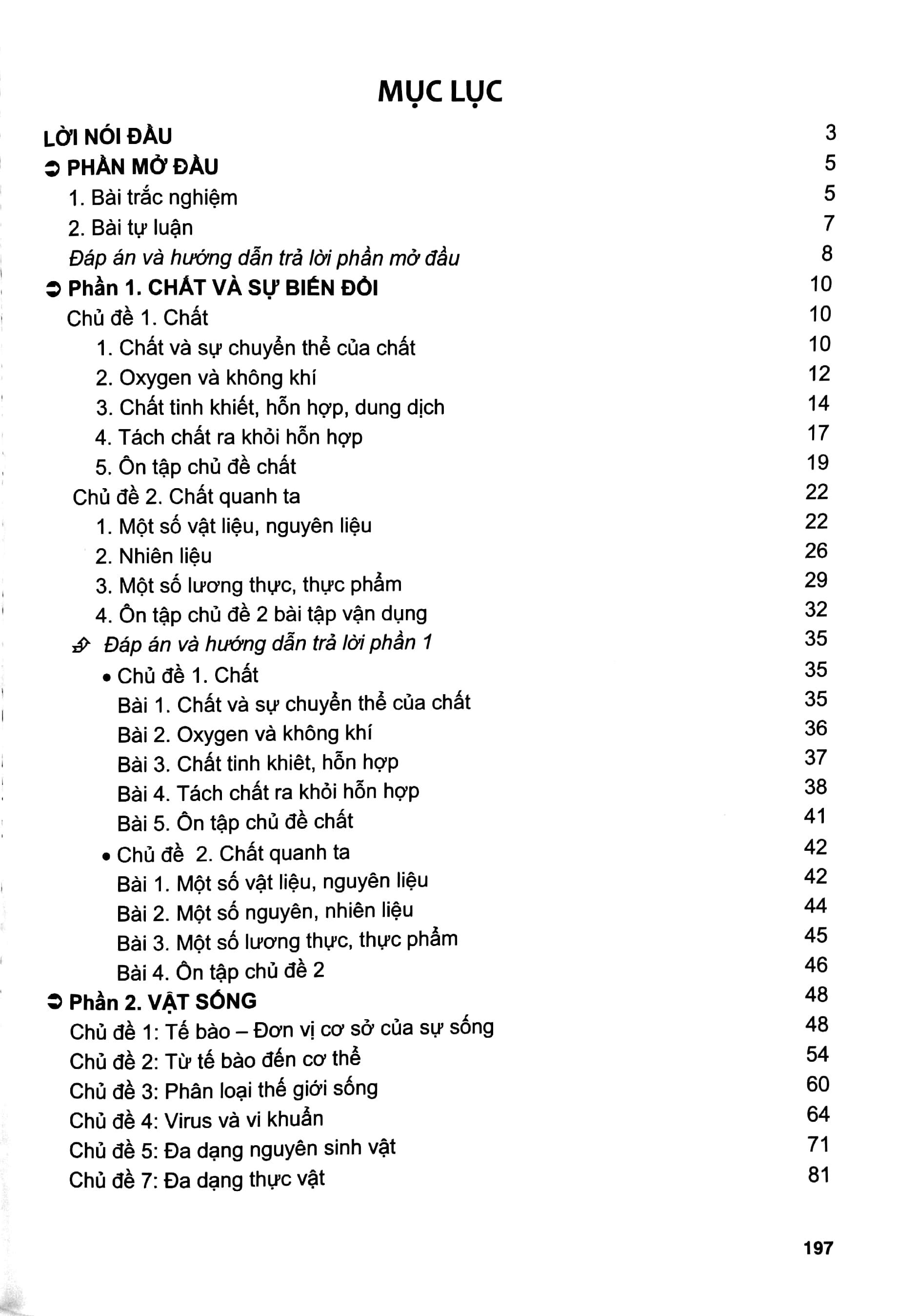 Bài Tập Phát Triển Năng Lực Môn Khoa Học Tự Nhiên 6 Cuốn sách dựa trên sự kết hợp các chủ đề khoa học : chất và sự biến đổi của chất, vật sống, năng lượng và sự biến đổi, Trái Đất và bầu trời, các nguyên lý, khái niệm chung về thế giới tự nhiên; sự đa dạng, tính cấu trúc, tính hệ thống, sự vận động và biến đổi, sự tương tác