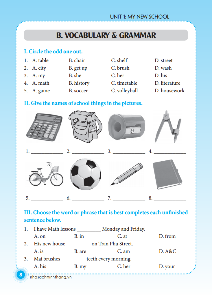 Bài Tập Tiếng Anh Lớp 6 (Không Đáp Án) (Sách Màu) Sách bài tập tiếng anh lớp 6 được biên soạn dành cho học sinh lớp 6, do Nhà xuất bản Đại học Quốc gia Hà Nội phát hành. Dựa vào phương pháp dạy ngôn ngữ giao tiếp (Communicative Language Teaching Method), sách tập trung vào việc phát triển các kỹ năng ngôn ngữ cho học sinh Trung học cơ sở thông qua các dạng bài bổ ích, trong đó tập trung vào luyện ngữ âm, từ vựng, kỹ năng đọc hiểu, kỹ năng viết và sử dụng ngôn ngữ tổng hợp thông qua các bài kiểm tra (Tests), giúp cho các em học sinh có thể tổng hợp kiến thức hiệu quả nhất.