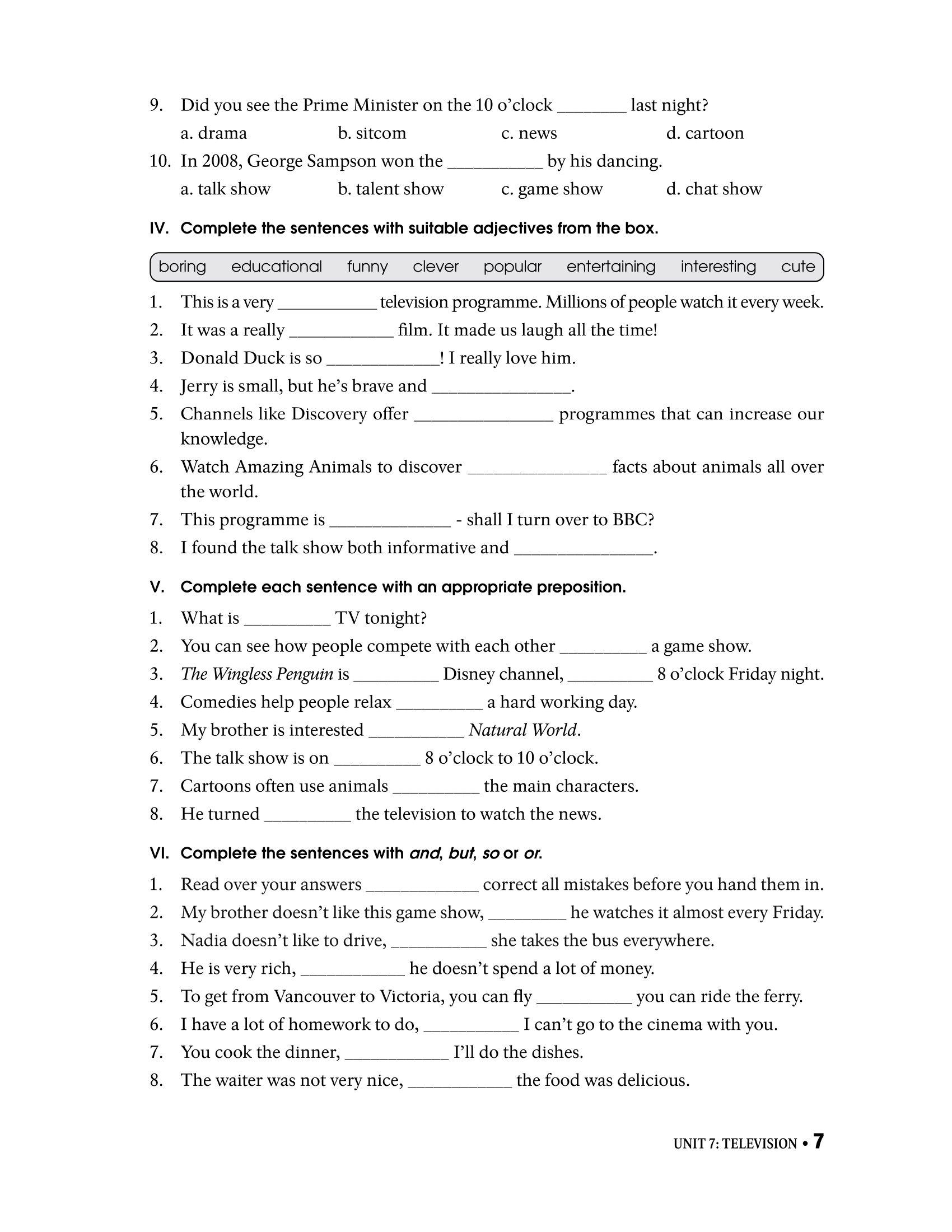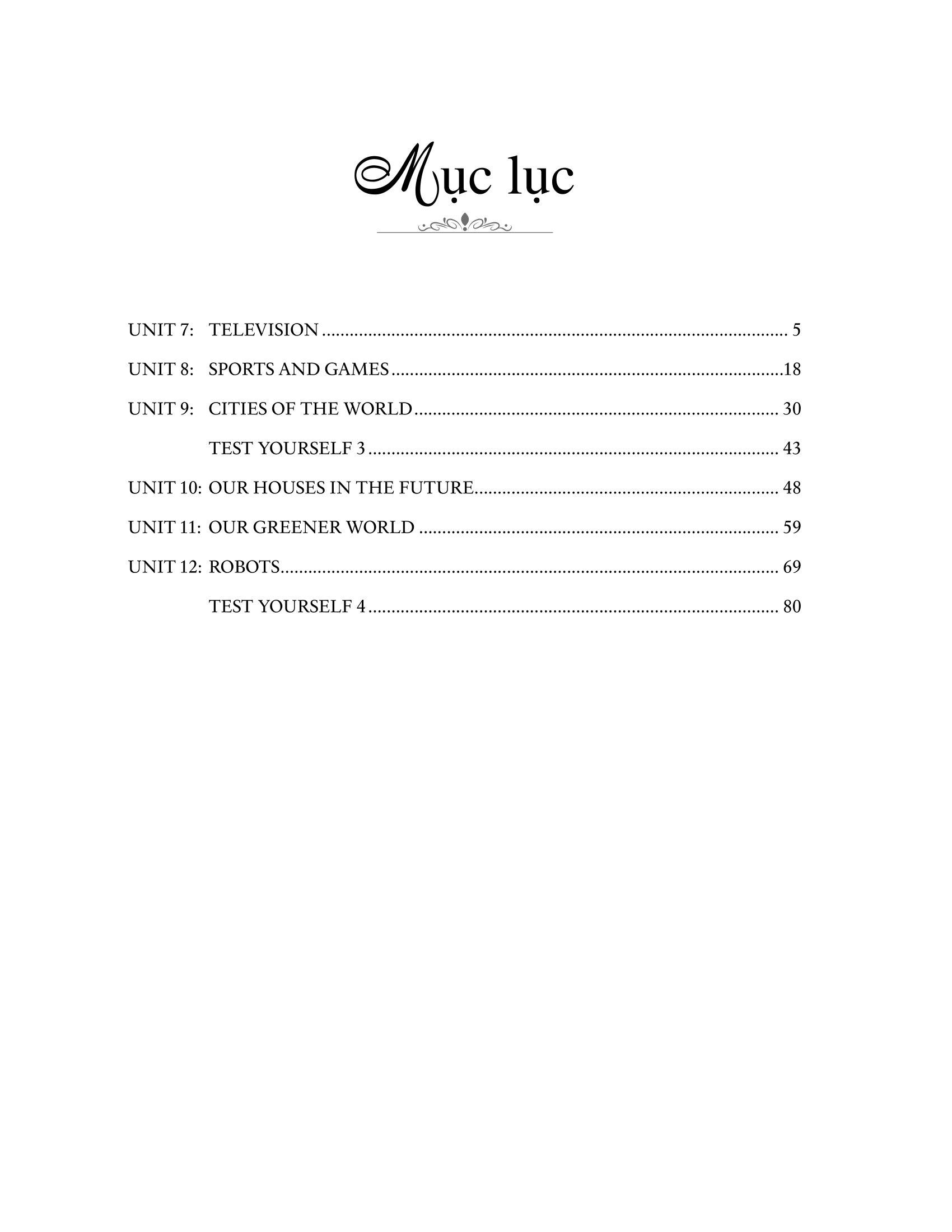 Sau phần bài tập của mỗi đơn vị bài tập có một bài kiểm tra (Test for Unit) và sau 3 đơn vị bài tập có một bài tự kiểm tra (Test Yourself) nhằm giúp các em ôn tập và củng cố kiến thức đã học.
