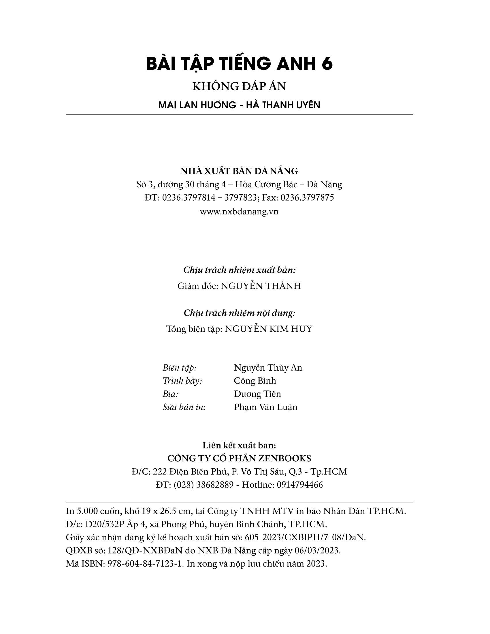 Nhằm giúp các em học sinh có thêm tài liệu để ôn luyện và thực hành môn tiếng Anh 6 theo chương trình mới của Bộ Giáo dục và Đào tạo, chúng tôi biên soạn bộ sách Bài tập tiếng Anh 6.