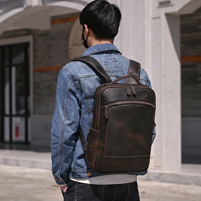 Ba lô nam da bò thật BHM9251 Vừa laptop 13.3inch