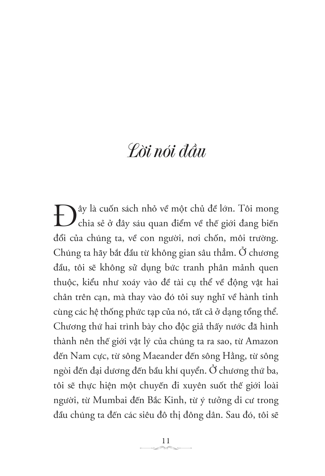 Chương 6: Xếp tất cả năm chương trên vào một hệ thống: “Sự gián đoạn hệ thống tự nhiên của Trái đất do Homo sapiens gây ra đòi hỏi một sự hiểu biết sâu hơn, rộng hơn về địa lý. Hành tinh chúng ta ở giữa chương này và chúng ta là tác giả số phận của nó”; từ đây khuyến khích và cổ động mọi người tìm hiểu về địa lý, đánh thức năng lực địa lý bẩm sinh trong chính mình; hiểu địa lý có thể giúp chúng ta hiểu về bản chất nơi mình đang sống – Trái đất, do vậy chúng ta mới có thể tìm ra biện pháp bền vững giải quyết vấn đề môi trường.