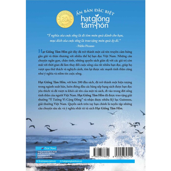 Với mong muốn đồng hành cùng bạn đọc trên hành trình ấy, First News xin giới thiệu “Hạt Giống Tâm Hồn - Bản Giao Hưởng Cuộc Sống (Ấn Bản Đặc Biệt)”. Tác phẩm gồm 127 câu chuyện chứa đựng ý nghĩa sâu sắc, được tuyển chọn kỹ lưỡng từ hơn 200 tựa sách Hạt Giống Tâm Hồn đã xuất bản.