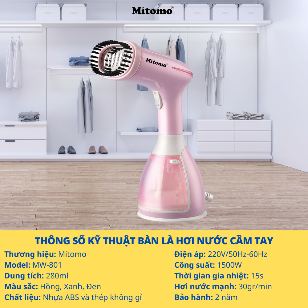 BÀN LÀ HƠI NƯỚC CẦM TAY MITOMO MW-801 - BẢO HÀNH CHÍNH HÃNG 2 NĂM