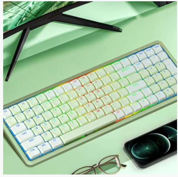 THÔNG SỐ KỸ THUẬT: Tên sản phẩm: Bàn phím cơ không dây Dualmode NEWMEN Mama SK01 Matcha Milk Sugar Phương thức kết nối : bluetooth , 2.4g , có dây C Số lượng phím 100 Switch : Được tinh chỉnh cảm giác huannuo low, G-Pro Low Chuyển đổi toàn bộ  : hỗ trợ Hotswap : hỗ trợ Led: rgb Chất liệu keycap pbt, keycap pbt mờ Giao diện dây : cáp bện 1.8m giao diện type-c Dung lượng pin : 3000mah Đầu vào định mức 5v1.5a Kích thước sản phẩm : 381.8 x 134.8 x 27.7mm Trọng lượng : 654g (Phím) Hỗ trợ hệ thống : win 7/8/10/11, android7.0 trở lên, mac osx10.10 trở lên (android tương thích với các chức năng phím cơ bản) Một số thông số đến từ newmen lab hoặc đo thủ công, nên có thể có sai sót, vui lòng tham khảo sản phẩm thực tế để biết thêm chi tiết Bảo hành: 24 tháng MÔ TẢ SẢN PHẨM: Công nghệ khung hợp kim nhôm : Mỏng, chắc chắn, cảm giác chân thật chất lượng cao Keycap pbt doubleshot : Thoải mái hơn khi chạm vào 2 chế độ và 3 phương thức kết nối : Có dây & không dây: Bluetooth | 2.4g Switch: G-Pro / huannuo : Tùy chọn : Mượt mà, ổn định, thoải mái Săp xếp 100 phím : Bố cục nhỏ gọn Tương thích nhiều hệ thống : Thích ứng mac, win, android, harmony os2.0… Giao diện type-c dây rời Pin dung lượng lớn 3000mah Toàn phím không xung , game và văn phòng đều tuyệt vời KHung mỏng bằng hợp kim nhôm Mỏng, chắc chắn, kết cấu tốt Khung áp dụng kỹ thuật anodizing nhôm ( quá trình điện hóa nhằm làm tăng độ dày lớp oxit hình thành tự nhiên trên bề mặt nhôm từ nanomet thành micronmet), Thiết kế cấu trúc nhẹ và mỏng, độ dày của bàn phím mỏng tới 8.6mm và thiết kế góc công thái học 6 độ giúp bàn phím trở nên tinh tế và độc đáo hơn 2chế độ hoạt động và 3 phương thức kết nối: Hỗ trợ ba phương thức kết nối bluetooth, 2.4g, có dây. Bluetooth hỗ trợ kết nối 3 thiết bị cùng lúc, fn +1/2/3 có thể nhanh chóng chuyển đổi thiết bị để sử dụng Kết nối cùng lúc 5 thiết bị hoạt động chuyển đổi dễ đàng giữa 5 thiết bị. 2 loại switch có sẵn Xanh, đỏ, nâu có sẵn nhiều loại trục, bạn có thể lựa chọn trục theo nhu cầu của bản thân Switch huannuo :  xanh,  đỏ,  nâu Swich xanh (Clicky ) : Phản hồi giống như bật dây cung, gẩy dây đàn : Tổng hành trình 3.1±0.2mm, hành trình dẫn truyền 1.2±0.3mm, độ lực chạm đáy 50±10gf, tuổi thọ 50 triệu Switch đỏ (Linear) : Tinh chỉnh cảm giác như nước chẩy mây trôi : Tổng hành trình 3.1±0.2mm, hành trình dẫn truyền 1.3±0.3mm, độ lực chạm đáy 45±8gf, tuổi thọ 50 triệu Switch nâu(Tactile) : Phản hồi giống như bật dây cung, gẩy dây đàn : tổng hành trình 3.1±0.2mm, hành trình dẫn truyền 1.4±0.4mm, độ lực chạm đáy 42±8gf, tuổi thọ 50 triệu Switch G-PRO 2.0 :  đỏ,  nâu Cảm giác mềm mượt trong tầm tay Switch đỏ(Clicky) : : tinh chỉnh cảm giác như nước chẩy mây trôi : tổng hành trình 3.1±0.2mm, hành trình dẫn truyền 1.3±0.3mm, độ lực chạm đáy 45±8gf, tuổi thọ 50 triệu Switch nâu (Tactile) : phản hồi giống như bật dây cung, gẩy dây đàn : tổng hành trình 3.2±0.2mm, hành trình dẫn truyền 1.7±0.4mm, độ lực chạm đáy 55±15gf, tuổi thọ 60 triệu Hiệu ứng ánh sáng mát mẻ  dễ chịu Đèn nền 16.8 triệu mầu + 16 hiệu ứng đèn nền Hiệu ứng đèn nền rgb thú vị, hiệu ứng đa dạng, thêm phần hứng thú khi chơi game Bật tắt hiệu ứng ánh sáng                             chuyển đổi hiệu ứng ánh sáng Chuyển đổi mầu sắc hiệu ứng                     chuyển đổi hiệu ứng ánh sáng trang trí Có thể cấu hình LED nhiều hình dạng: Trái tim, quả táo, trùm nho,… Keycap PBT Doubleshot Keycap sử dụng pbt mờ, phối mầu gradient, so với keycap truyền thống, chúng có khả năng chống mài mòn cao hơn và sử dụng lâu dài mà không cần bôi trơn, bề mặt tiếp xúc hình cầu, thoải mái hơn khi chạm vào Switch có cơ chế Hotswap Switch G-Pro và huannuo có thể tự do hoán đổi cho nhau Hỗ trợ các đế trục có thể được thay thế  và có thể được  dựng theo nhu cầu. các switch khác nhau có thể lắp với các vị trí phím khác nhau, bạn có thể đồng thời trải nghiệm cảm giác khác nhau trên cùng 1 bàn phím Kết nối ba thiết bị bluetooth : bạn có thể chuyển đổi giữa ba thiết bị theo ý muốn thông qua fn + 1/2/3 kéo công tắc sang chế độ bluetooth, nhấn và giữ fn  +1/2/3 trong 3 giây để kết nối mã với thiết bị mới Đèn báo 1 : khi sạc , đèn báo sạc sẽ nhấp nháy 2 : đèn báo chế độ Xanh đậm : kết nối bluetooth Cam : kết nối có dây Xanh lá : kết nối 2.4g