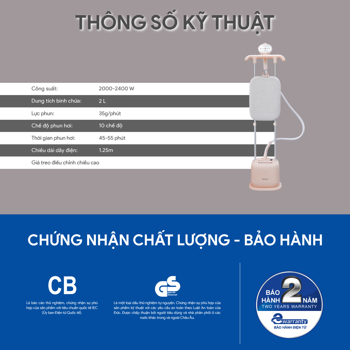 Hướng dẫn sử dụng Bàn ủi hơi nước đứng BlueStone GSB-3947 công suất 2400W, hàng chính hãng
